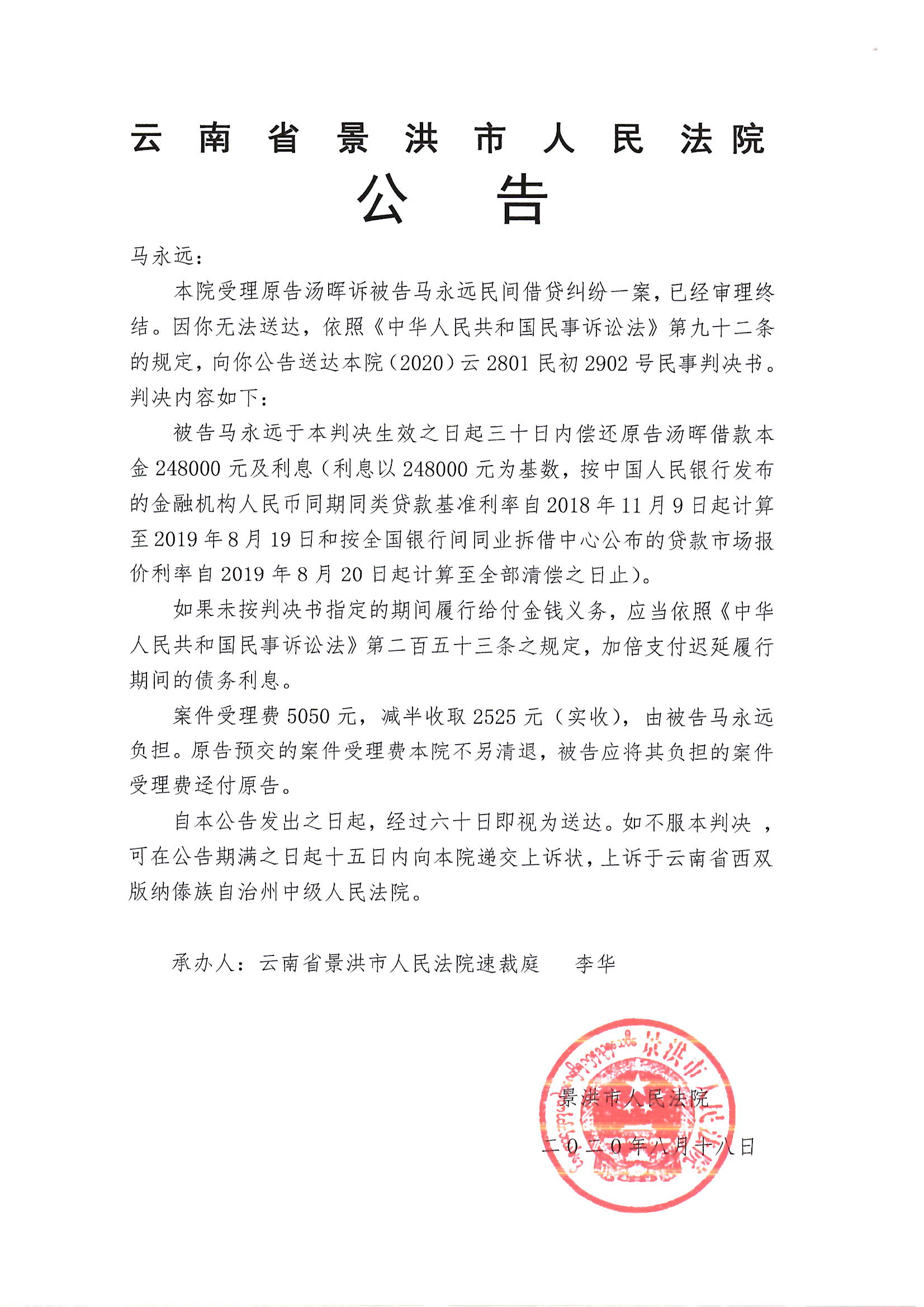 马永远(判决公告)