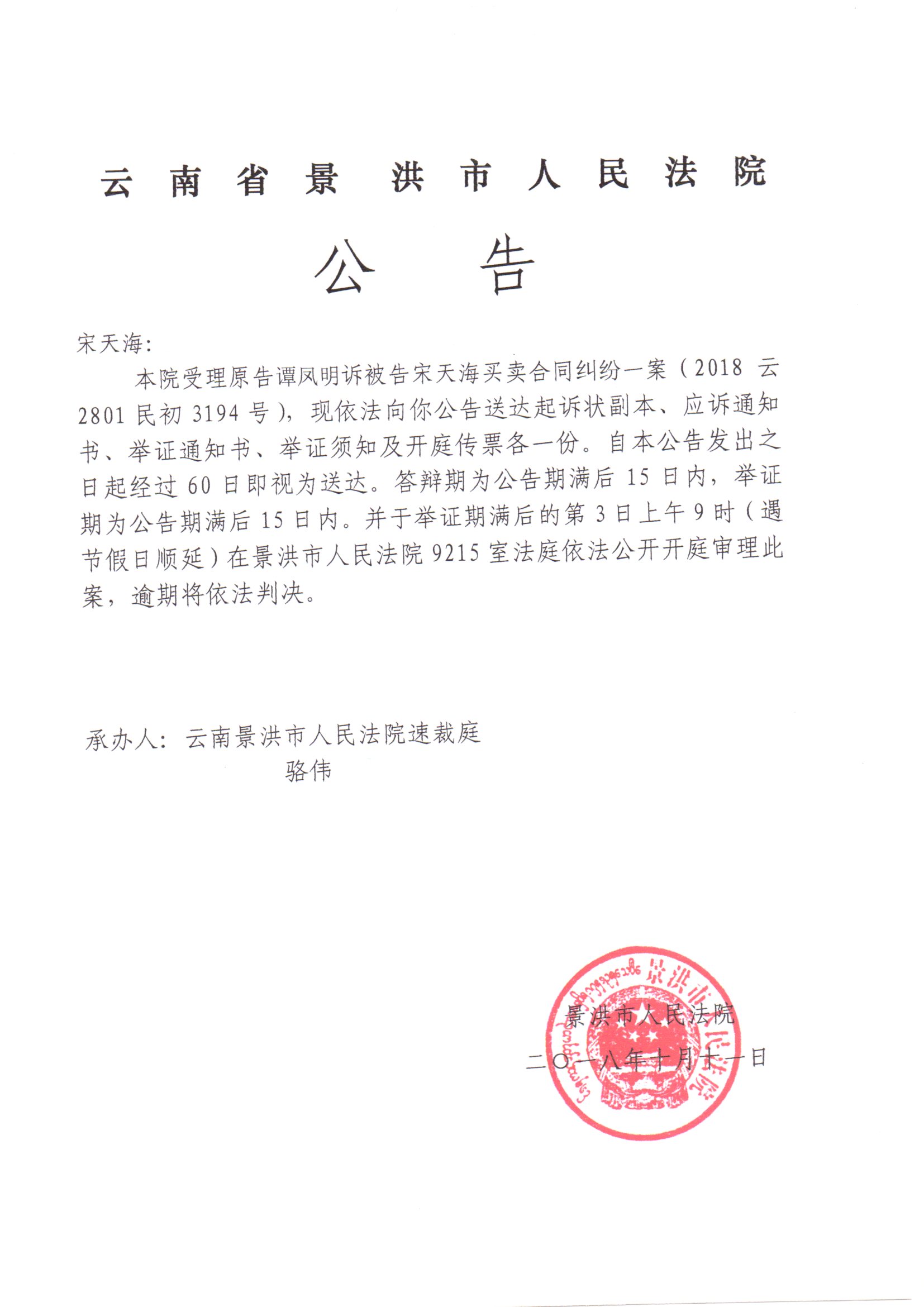 公告(宋天海)