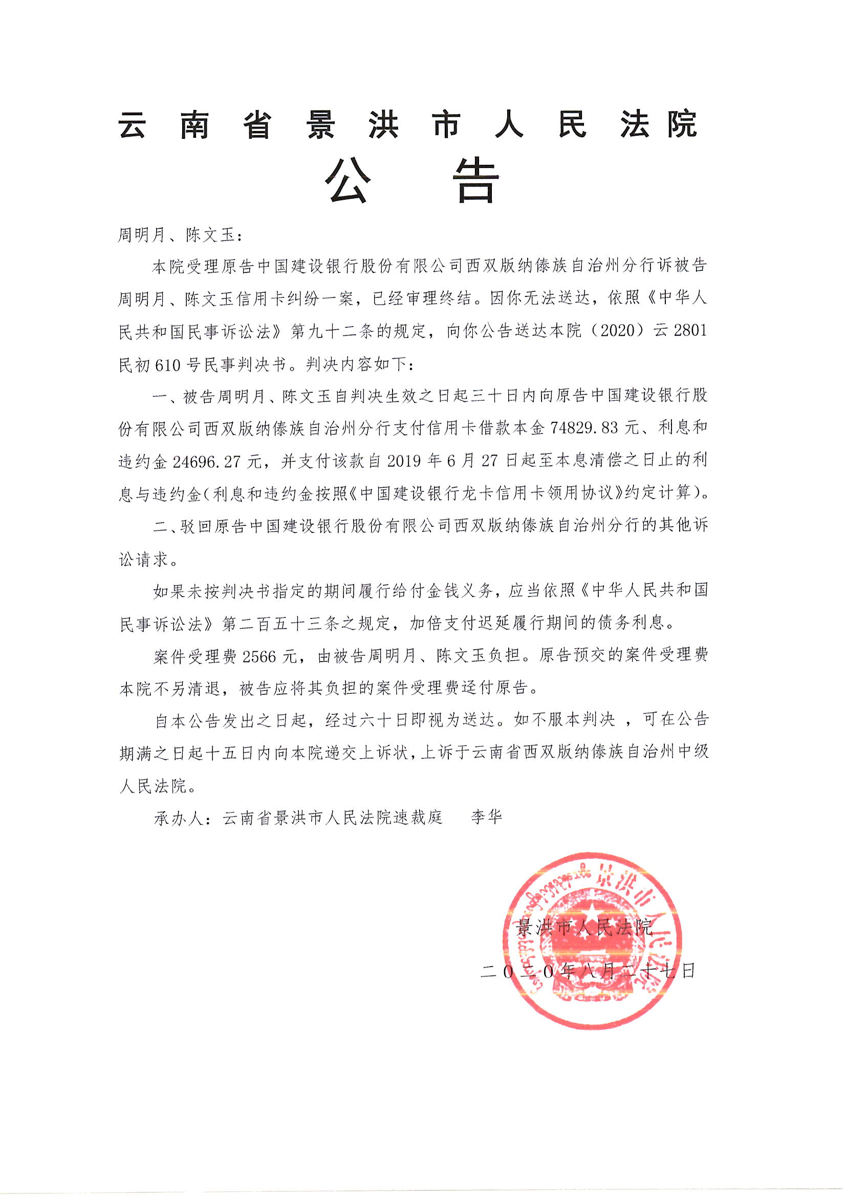 周明月、陈文玉(判决公告)
