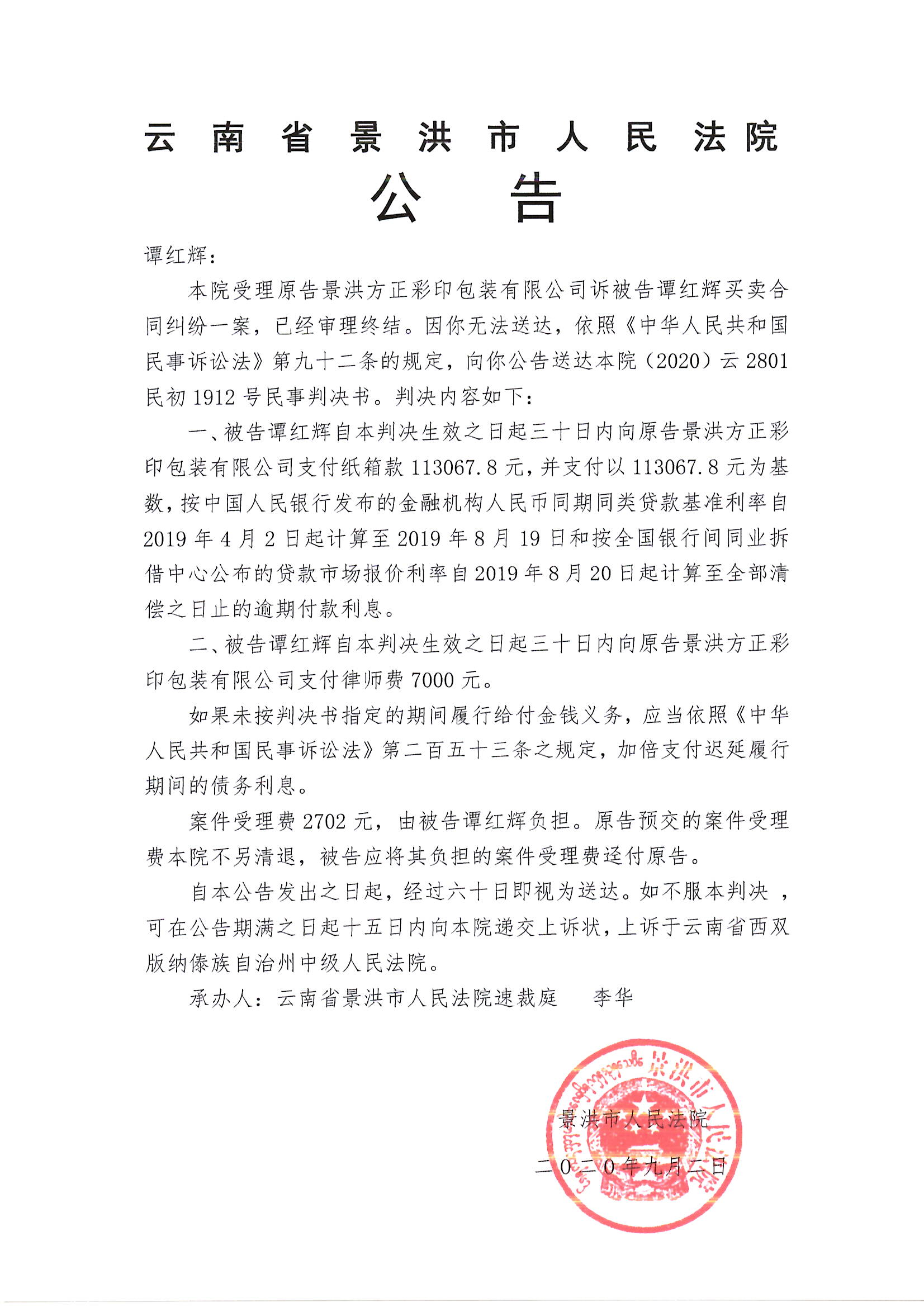 谭红辉(公告判决)