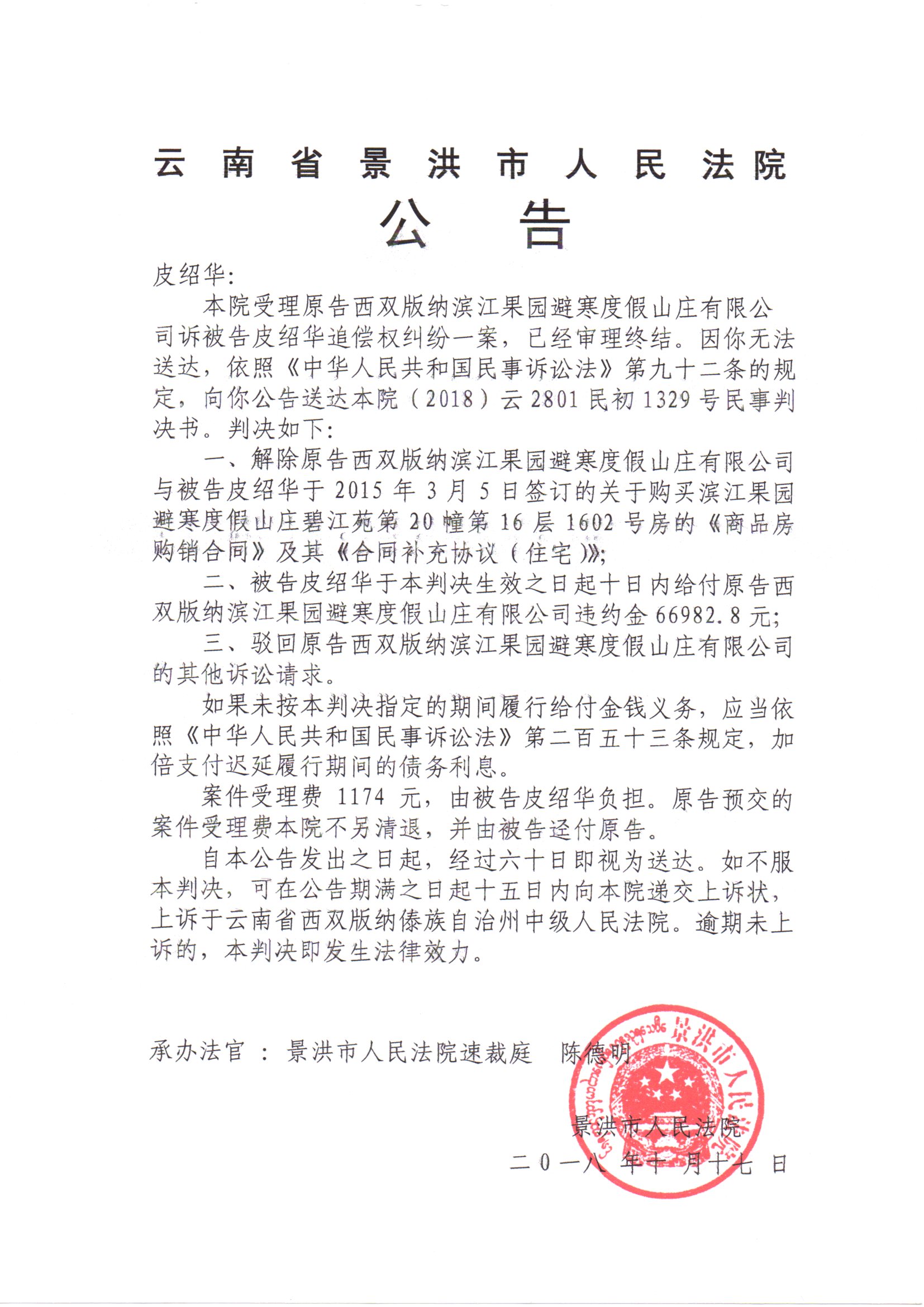 来源:景洪市人民法院 访问次数 :