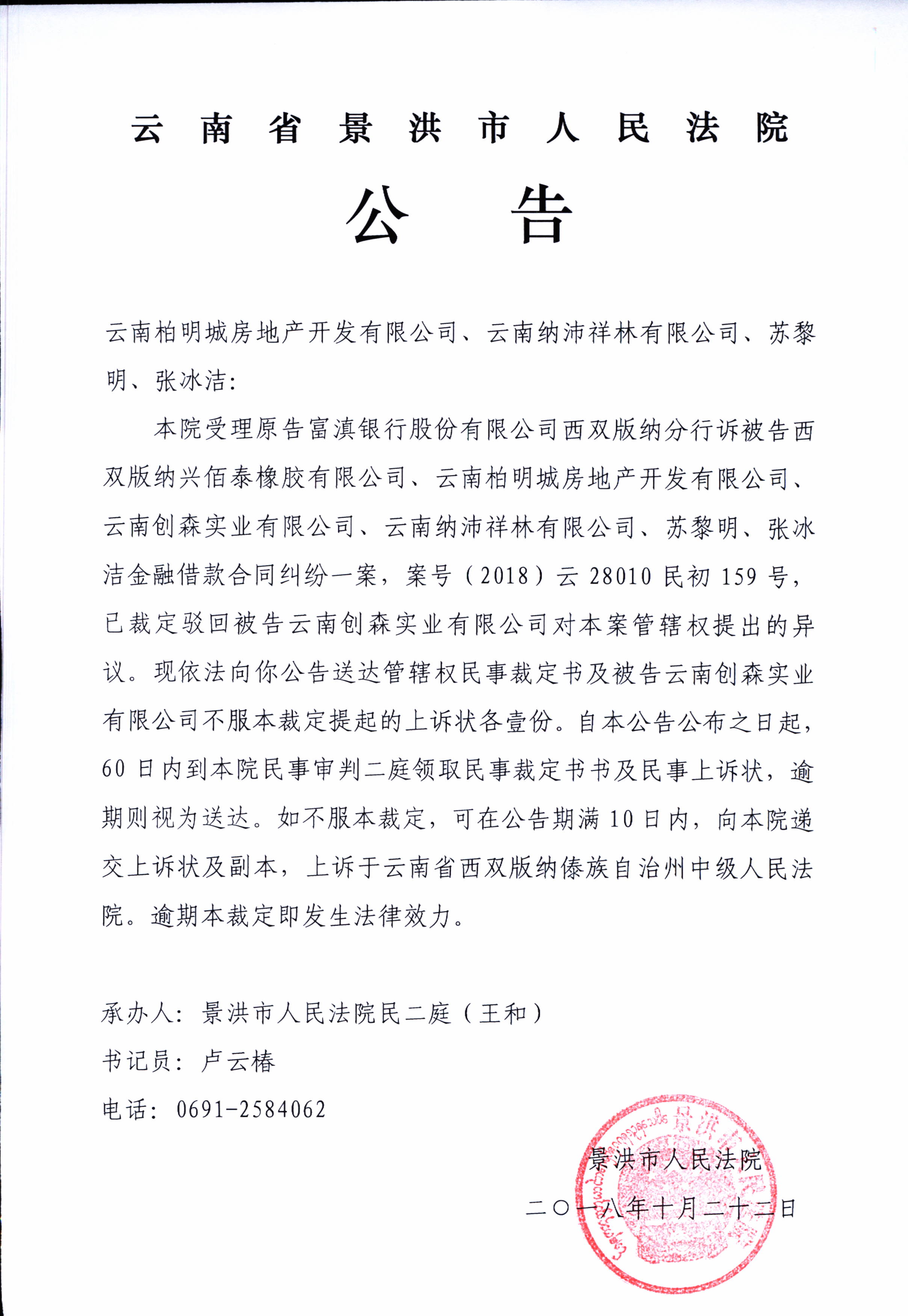 公告(云南柏明城房地产开发有限公司、云南纳沛祥林有限公司、苏黎明、张冰洁)