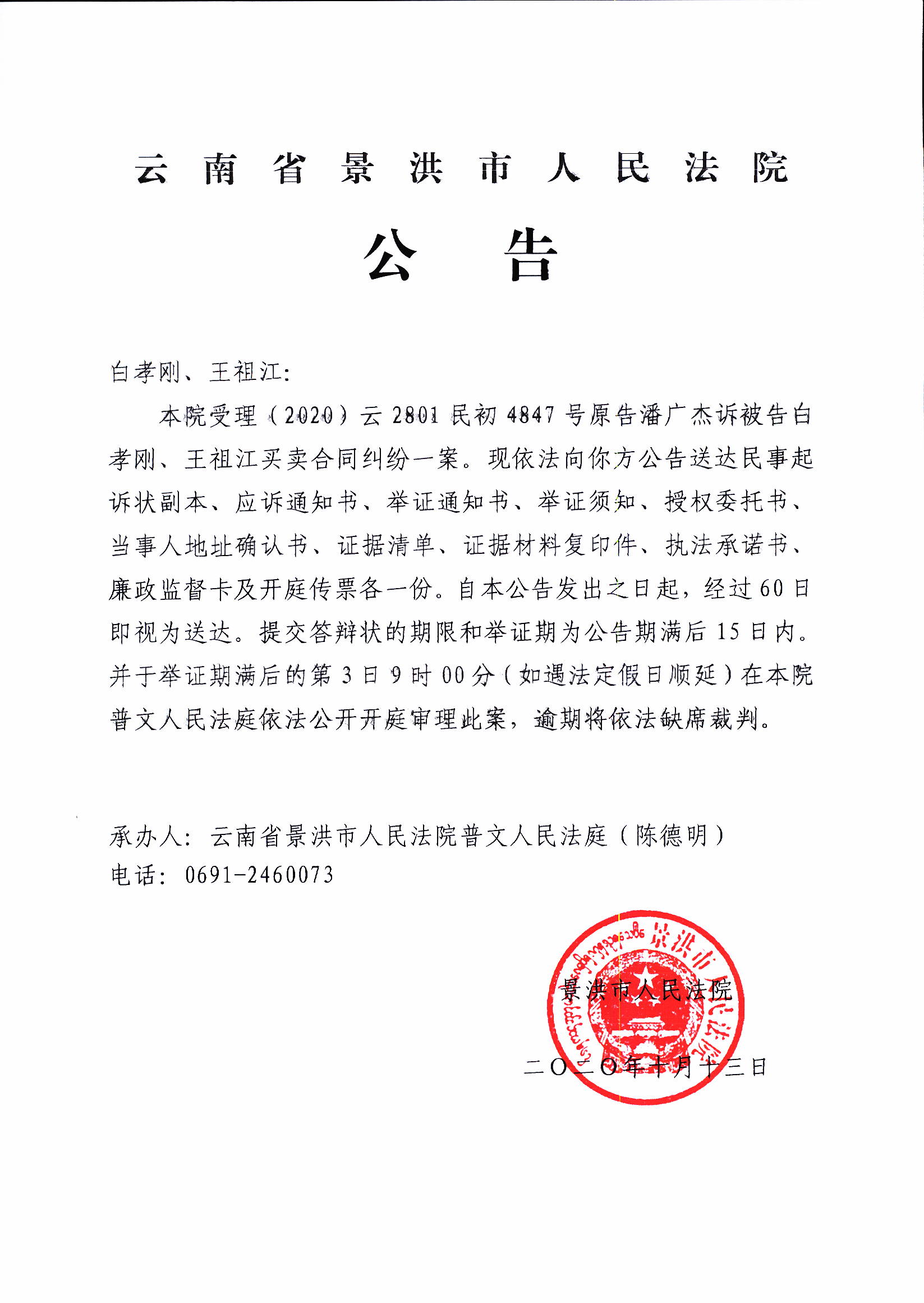 白孝刚、王祖江 (开庭传票)