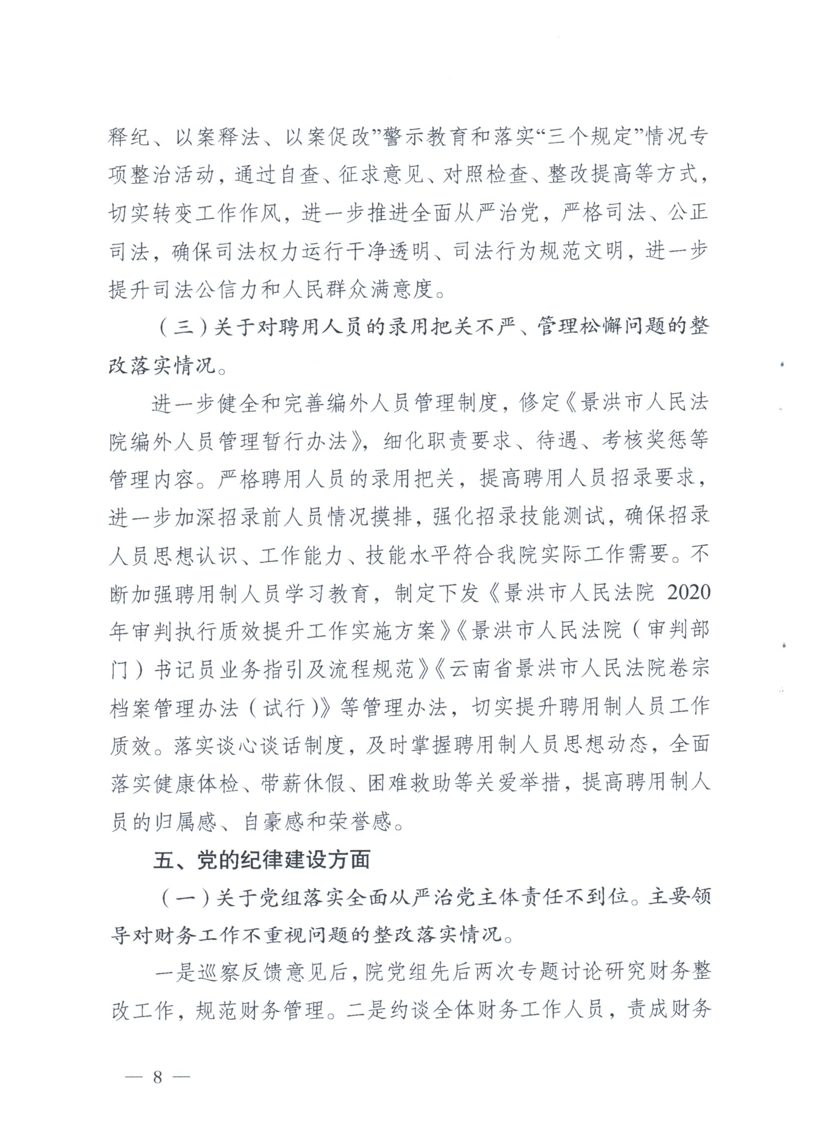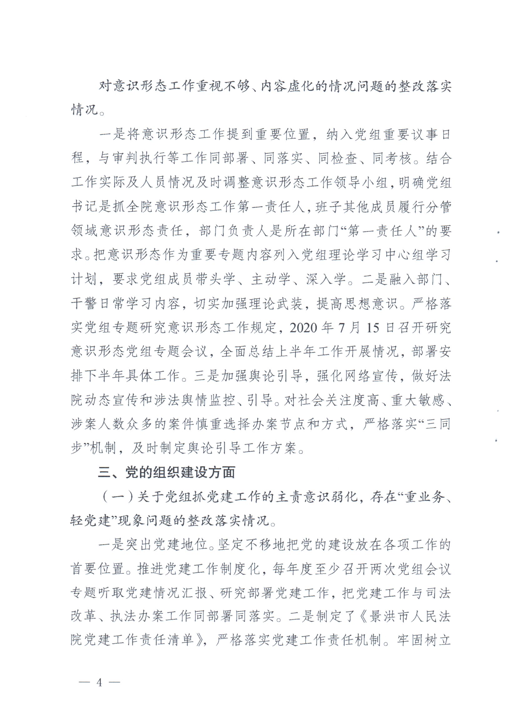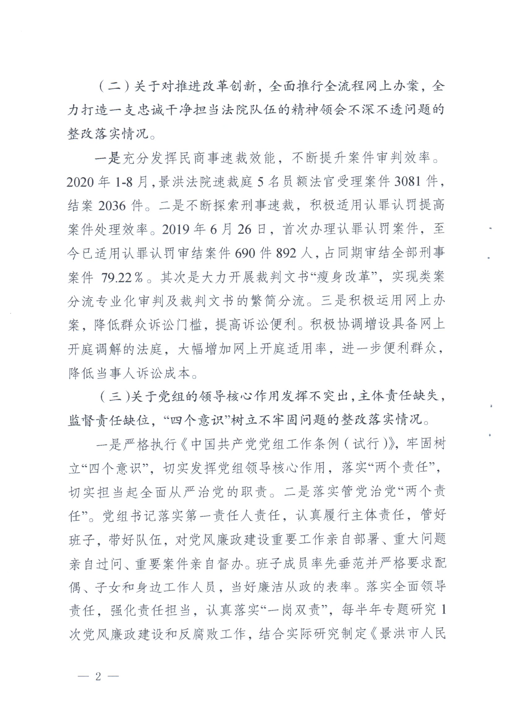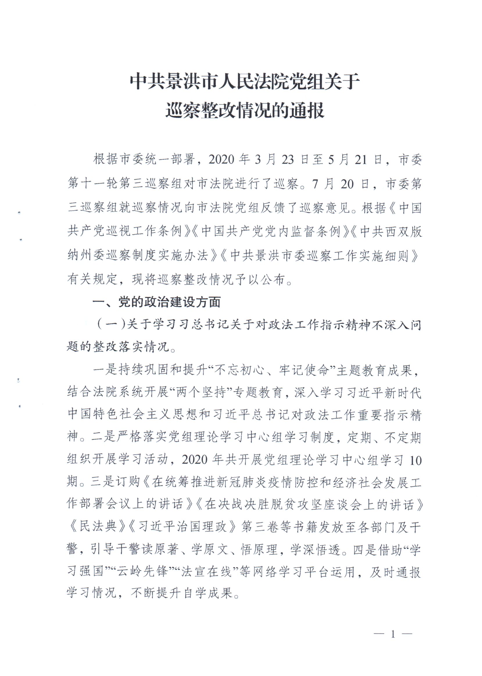 中共景洪市人民法院党组关于巡察整改情况的通报
