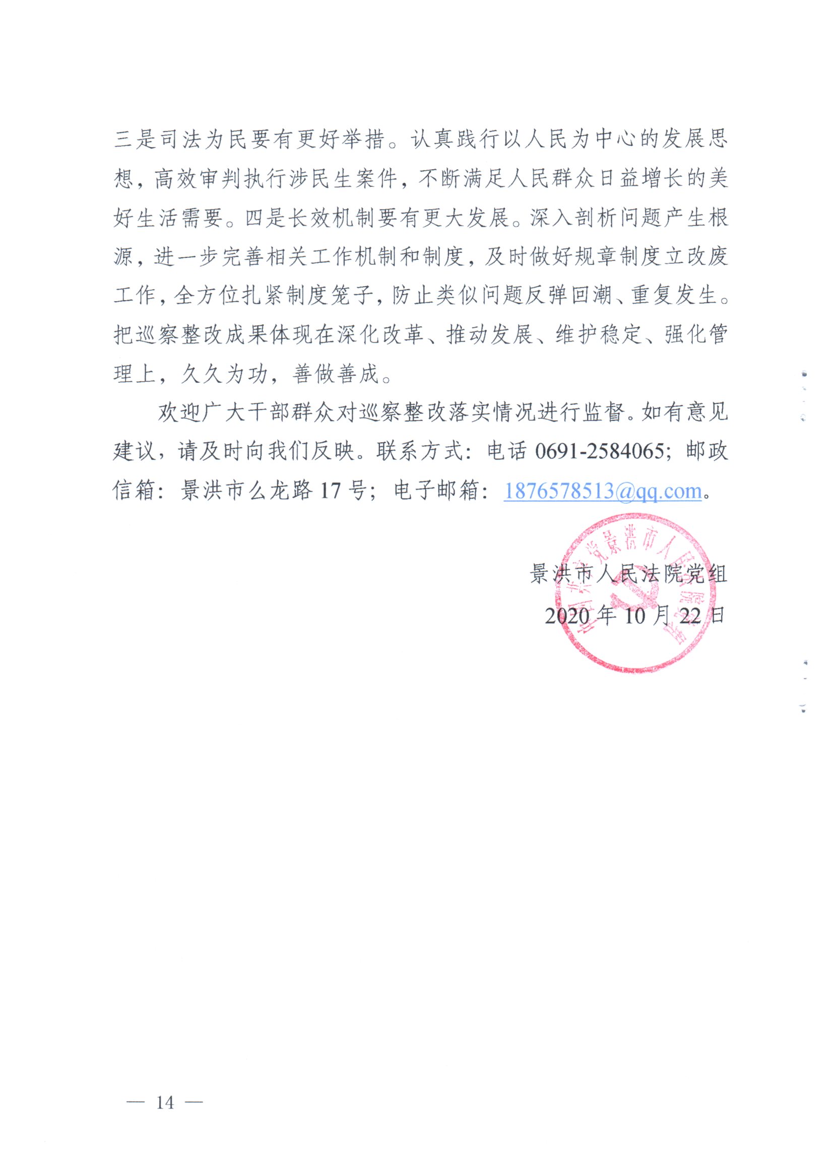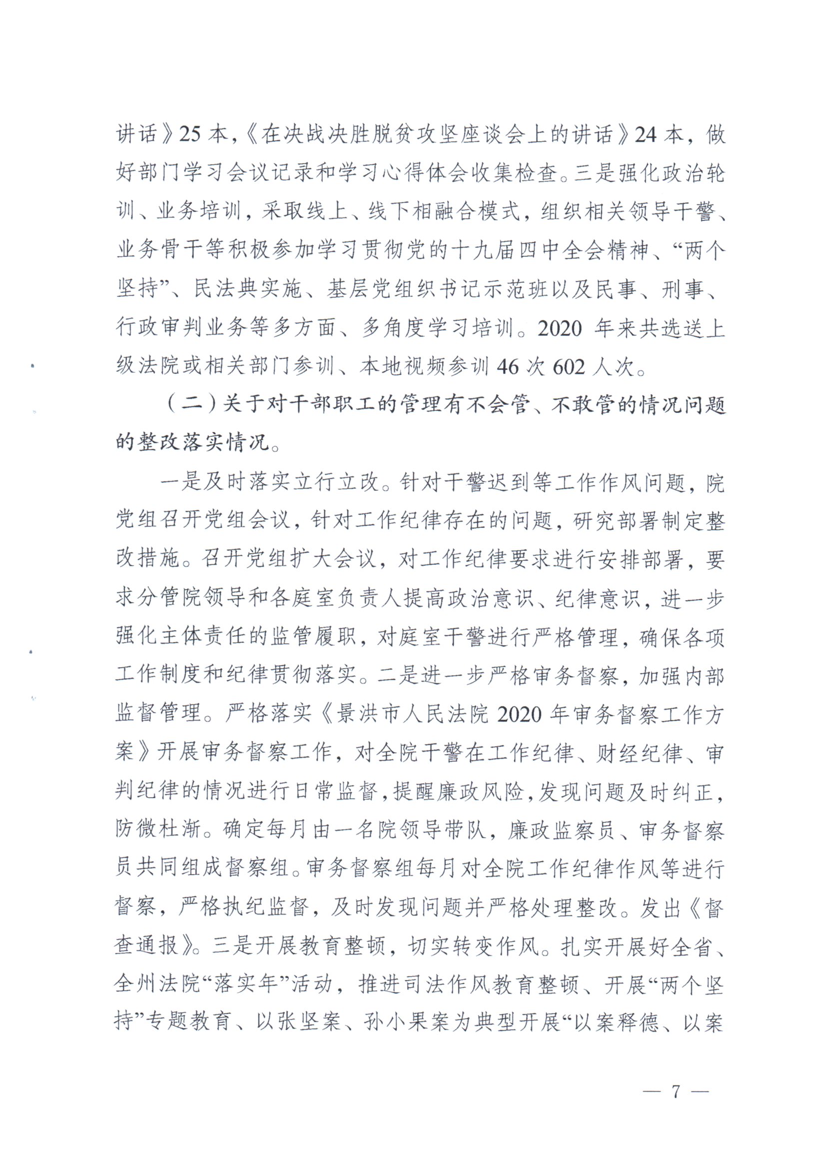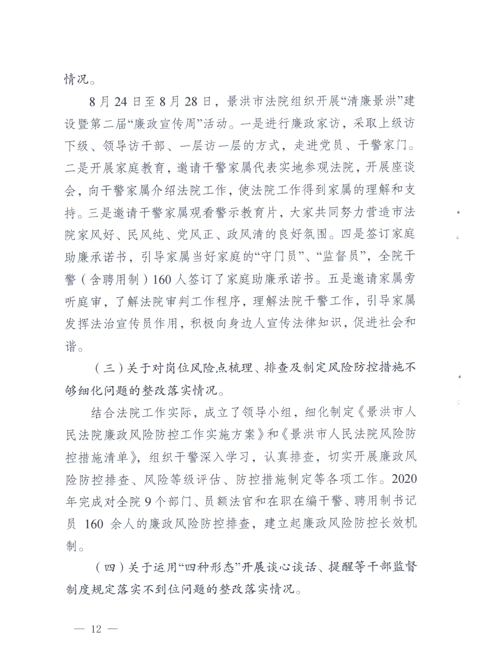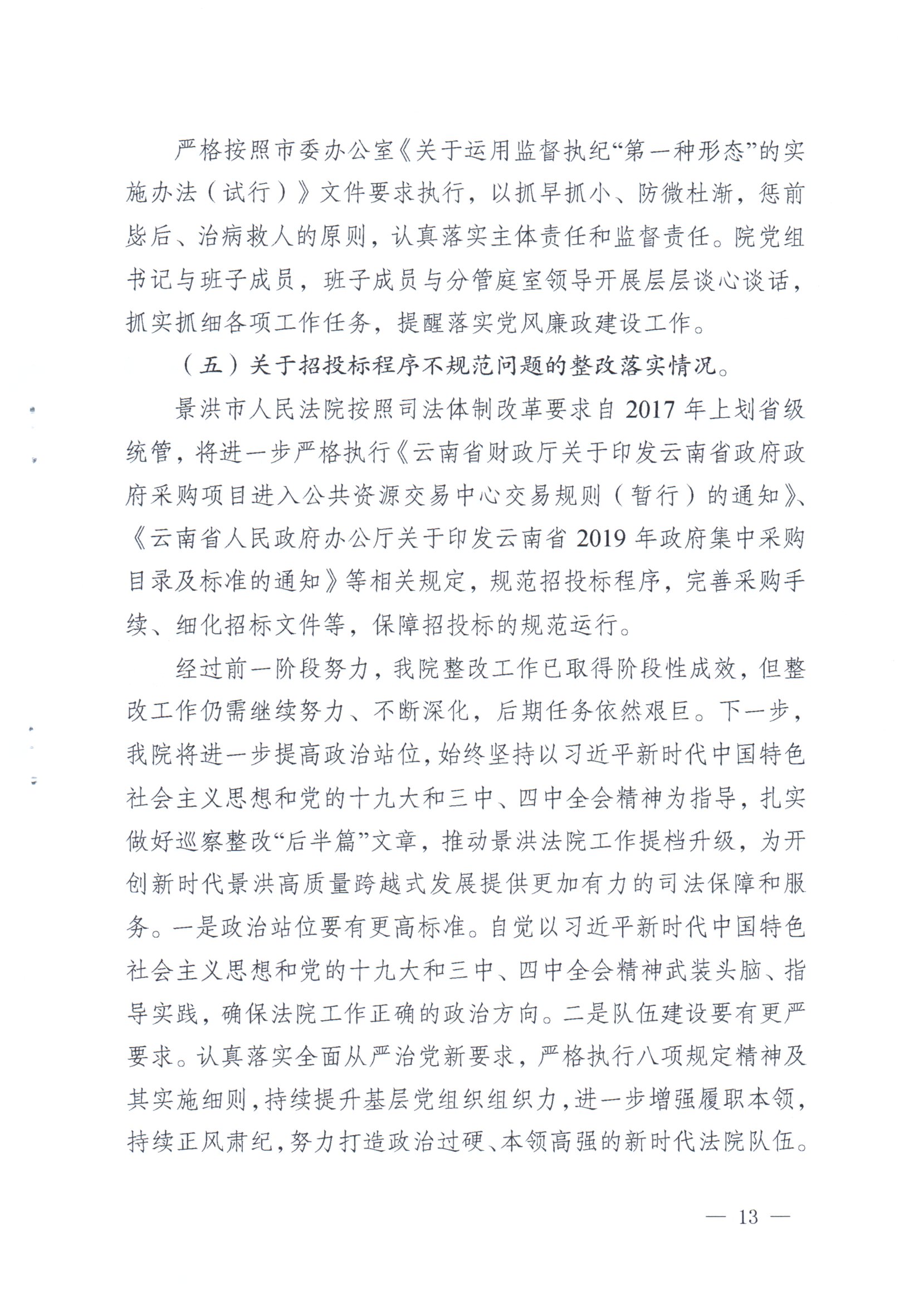 中共景洪市人民法院党组关于巡察整改情况的通报