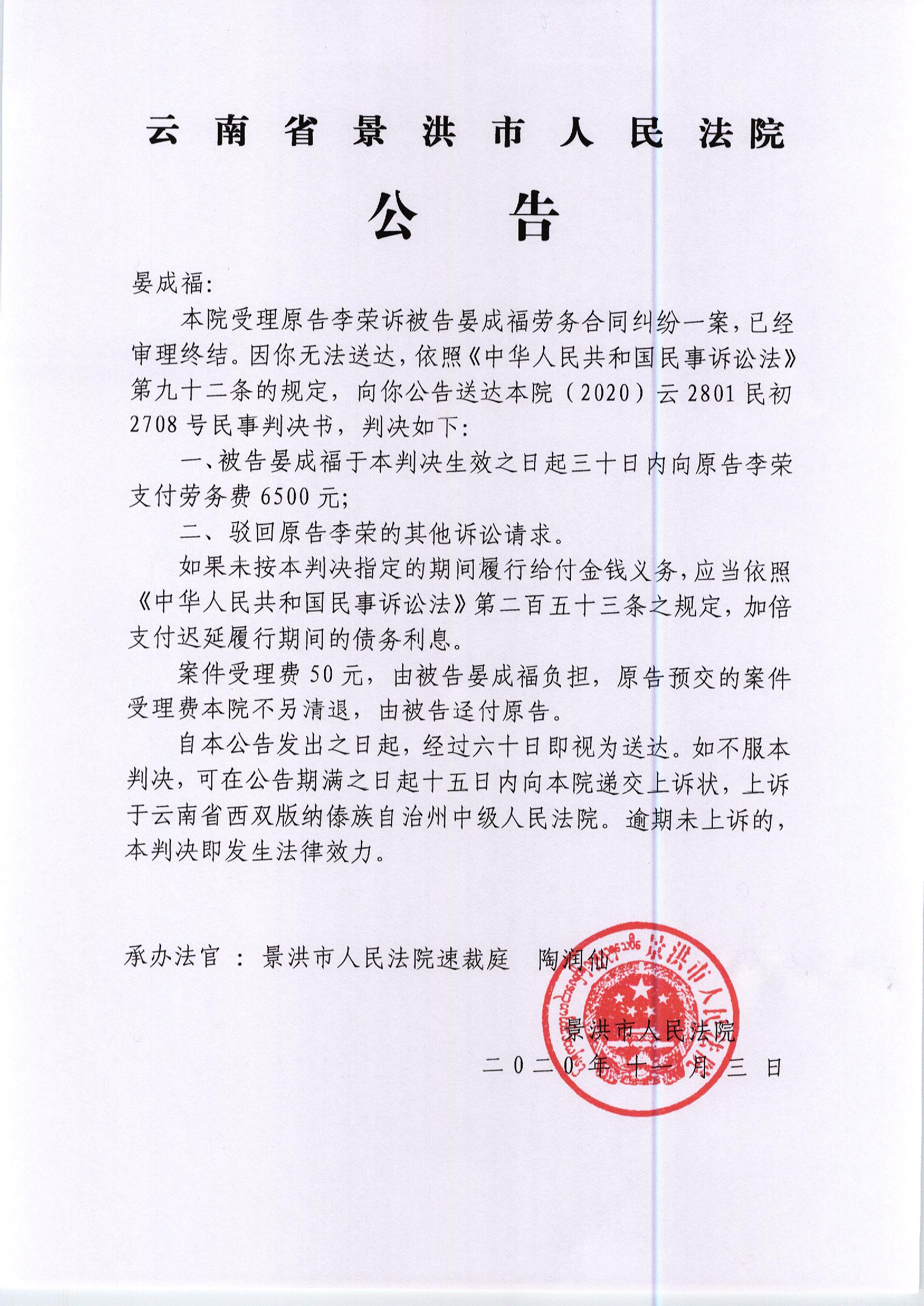 晏成福(判决公告)
