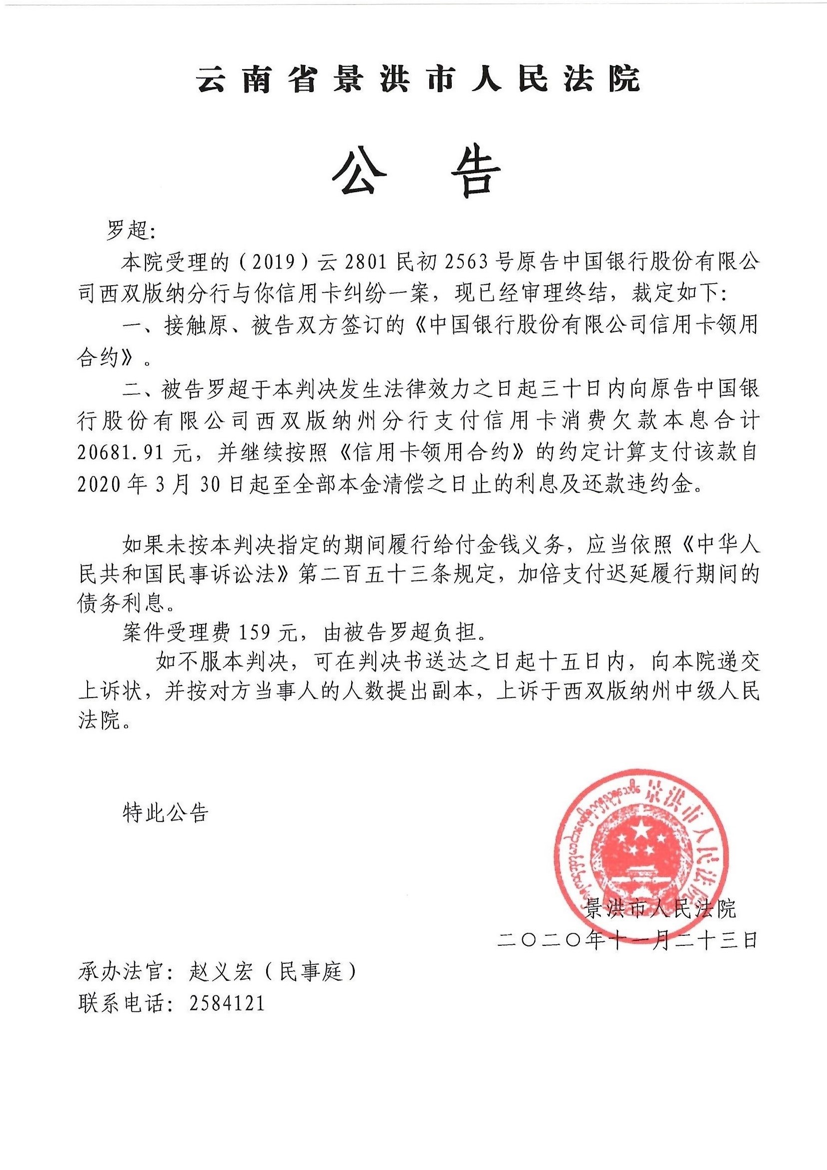 罗超公告