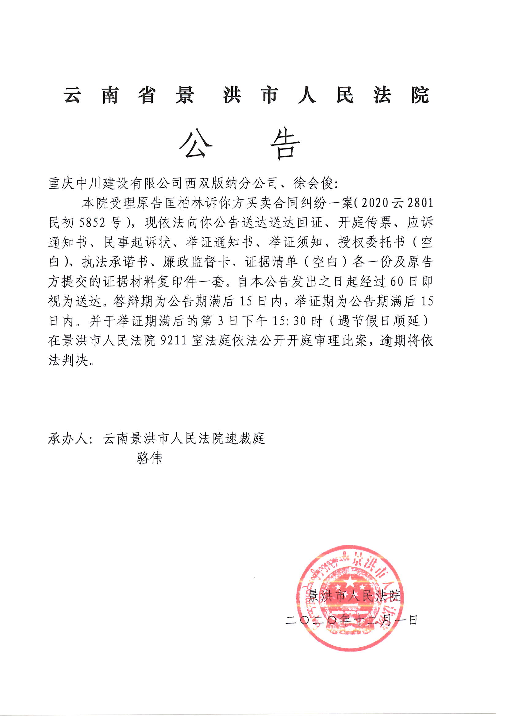 重庆中川建设有限公司西双版纳分公司、徐会俊