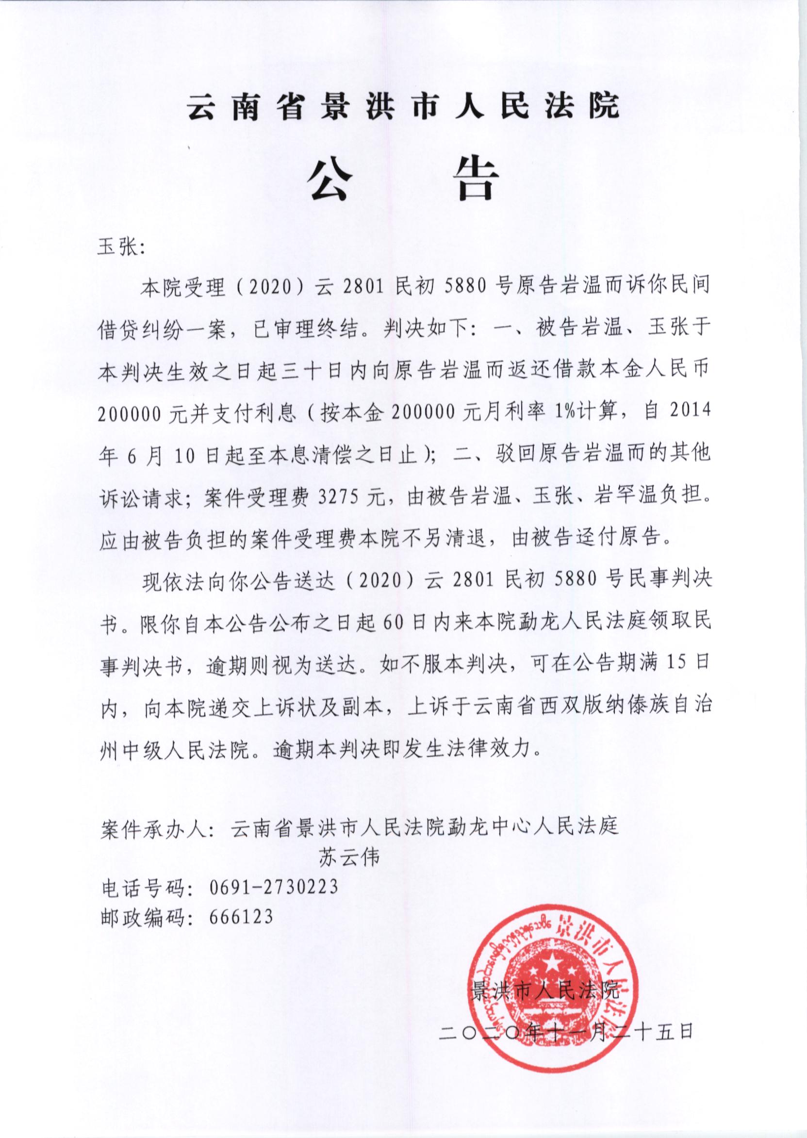 玉张(判决公告)
