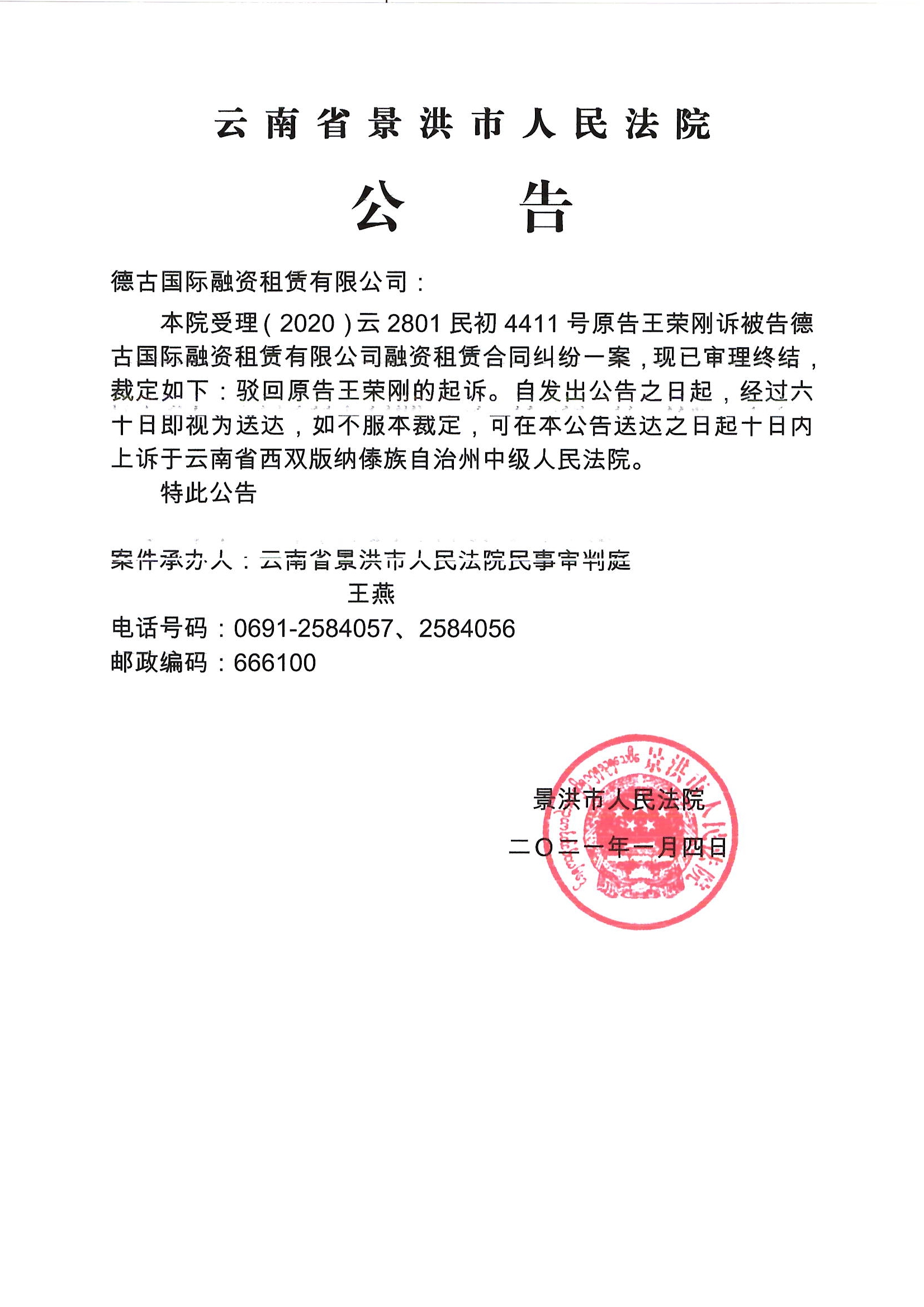 (2020) 4411 德古国际融资租赁有限公司 判决公告
