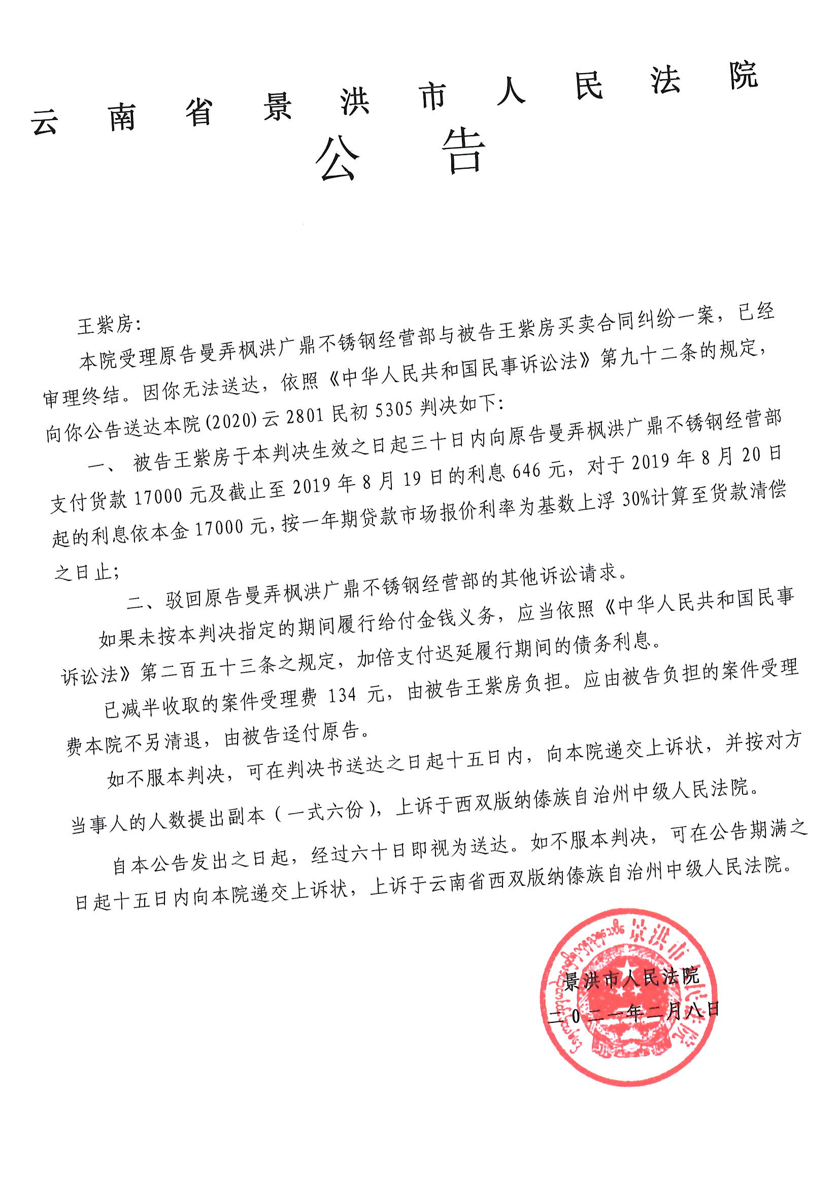 王紫房(5305)判决