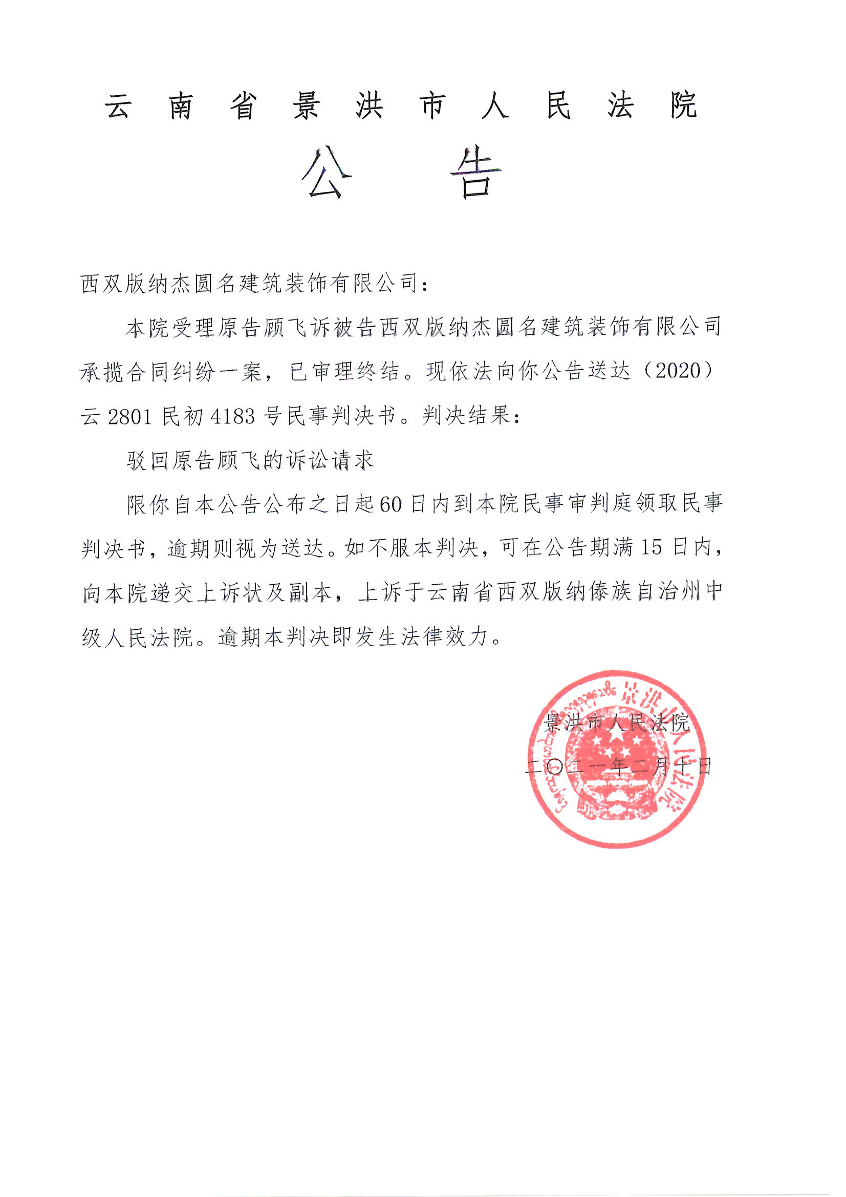西双版纳杰圆明建筑装饰有限公司(判决公告)