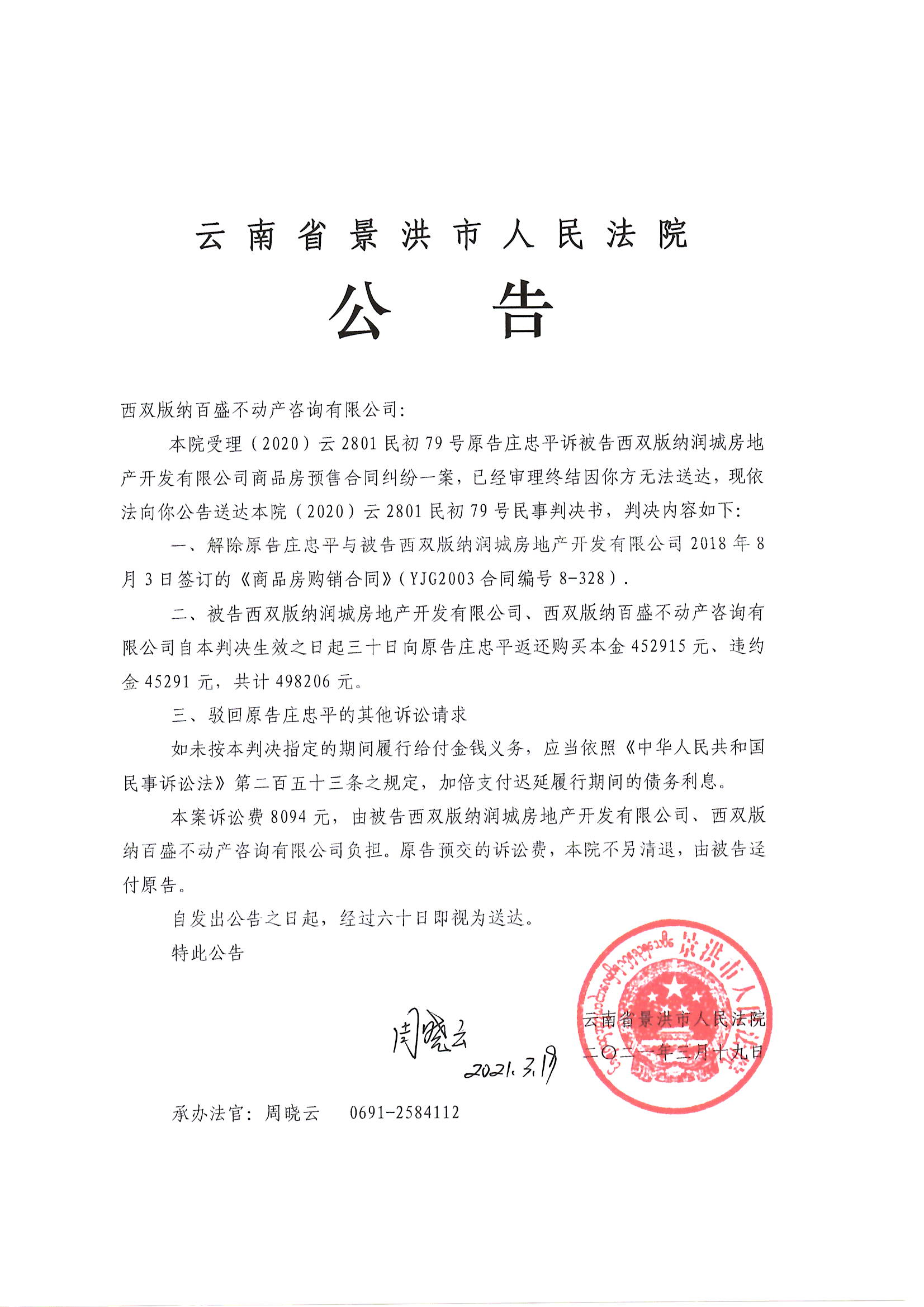 西双版纳百盛不动产咨询有限公司判决公告(2020)云2801民初79号