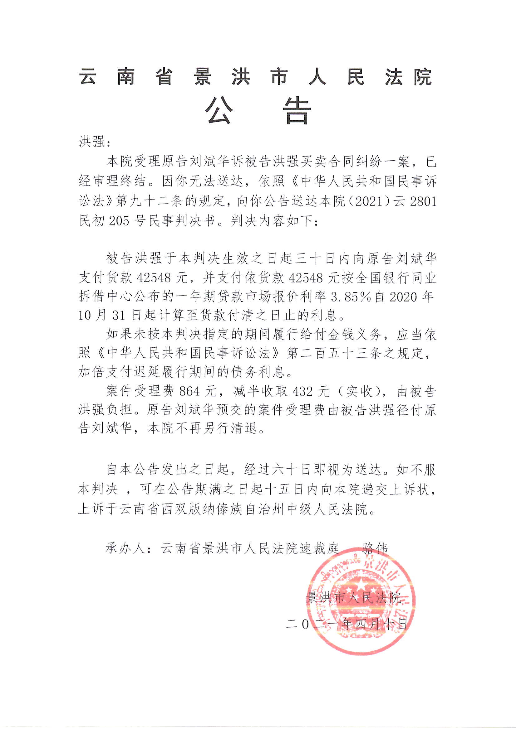 洪强(判决公告)
