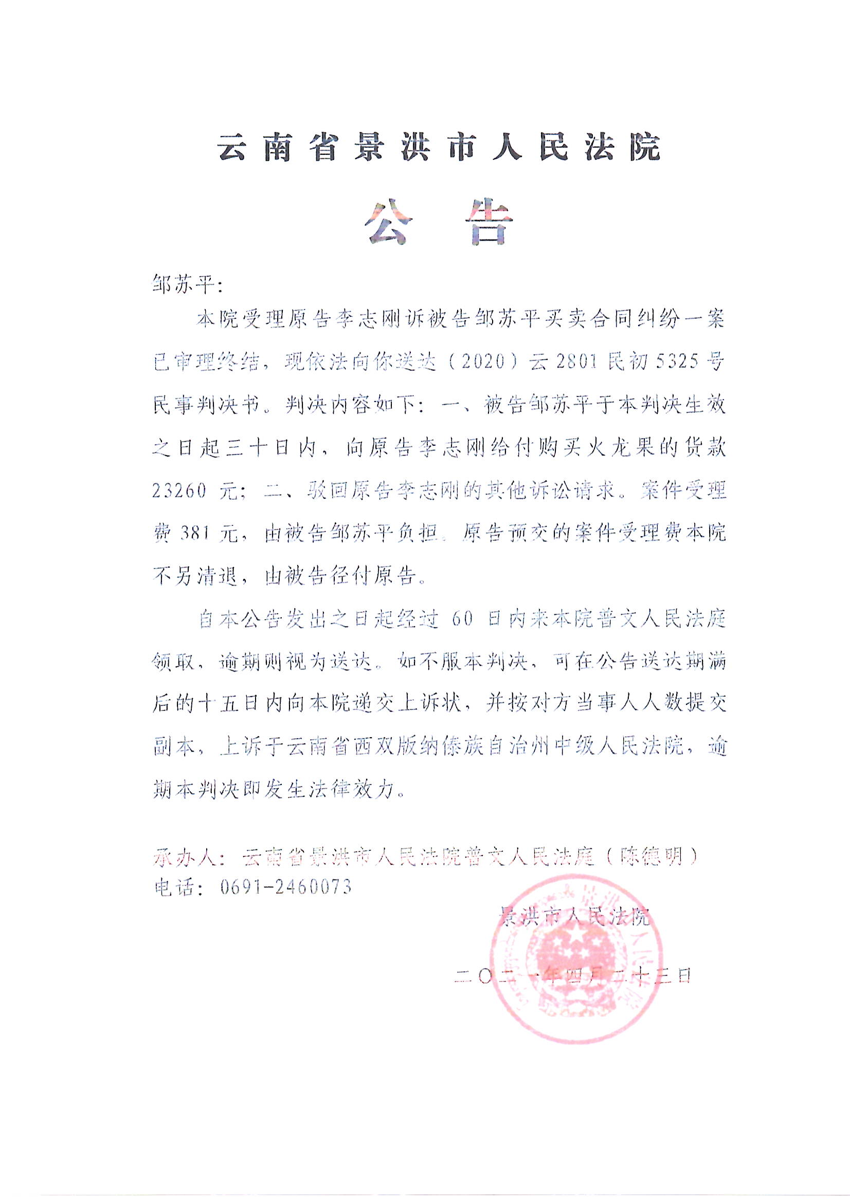 邹苏平判决公告5325号