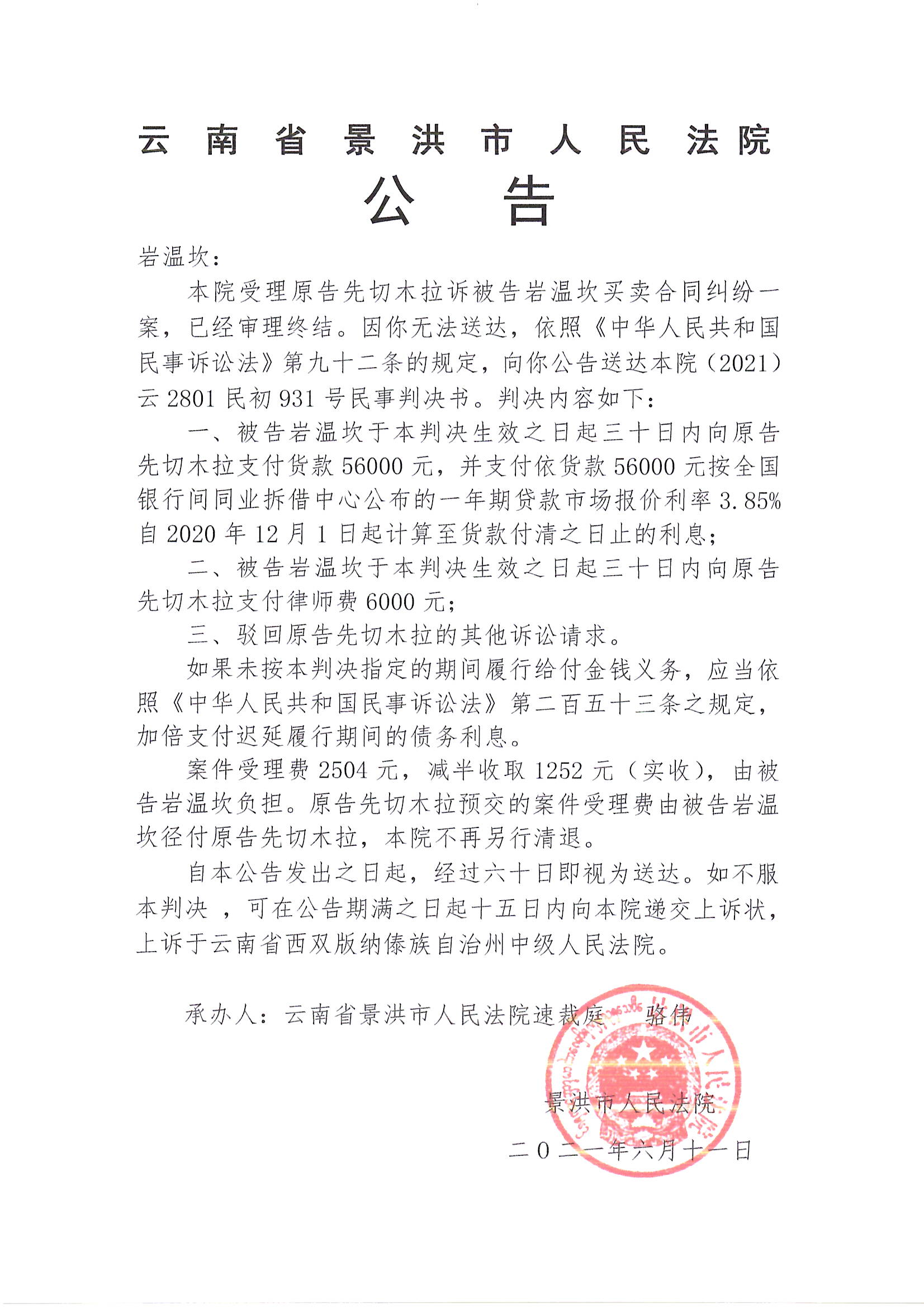 罪犯岩叫犯运送他人偷越国境罪(暂予监外执行)