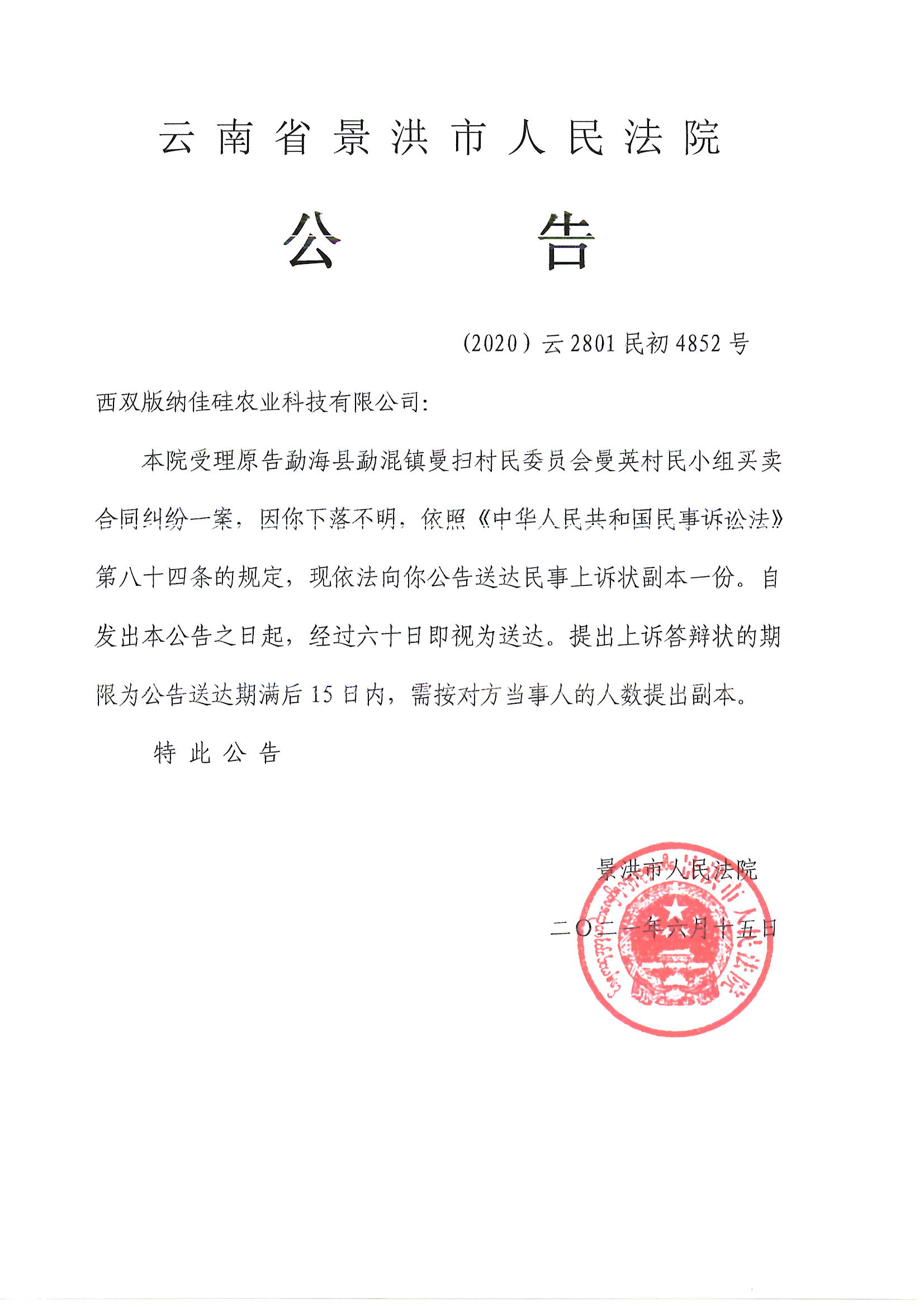 西双版纳佳硅农业科技有限公司(上诉公告)