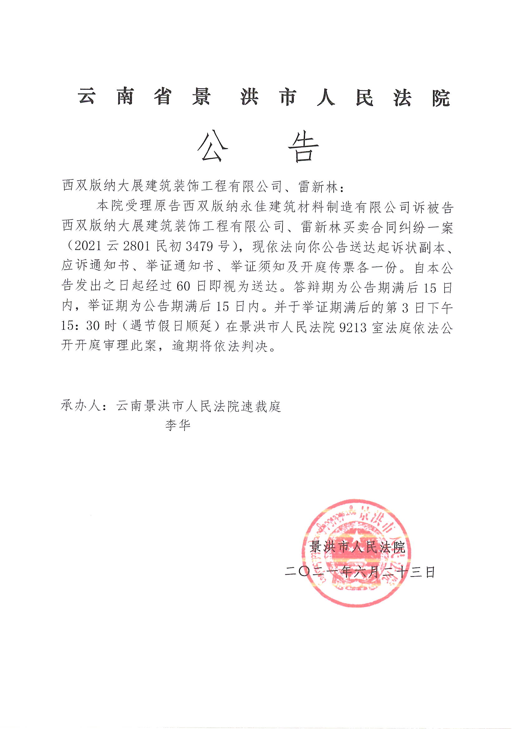 西双版纳大展建筑装饰工程有限公司、雷新林