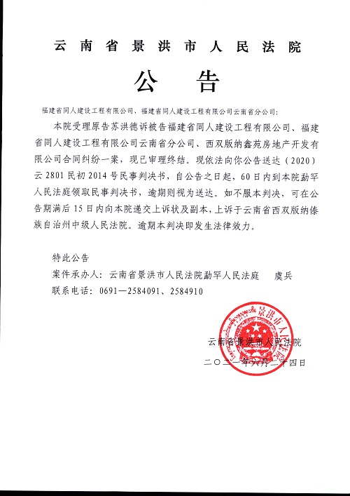 作者 :景洪市人民法院 来源:勐罕人民法庭 访问次数 :