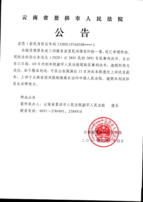 作者 :景洪市人民法院 来源:勐罕人民法庭 访问次数 :