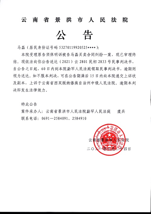 作者 :景洪市人民法院 来源:勐罕人民法庭 访问次数 :