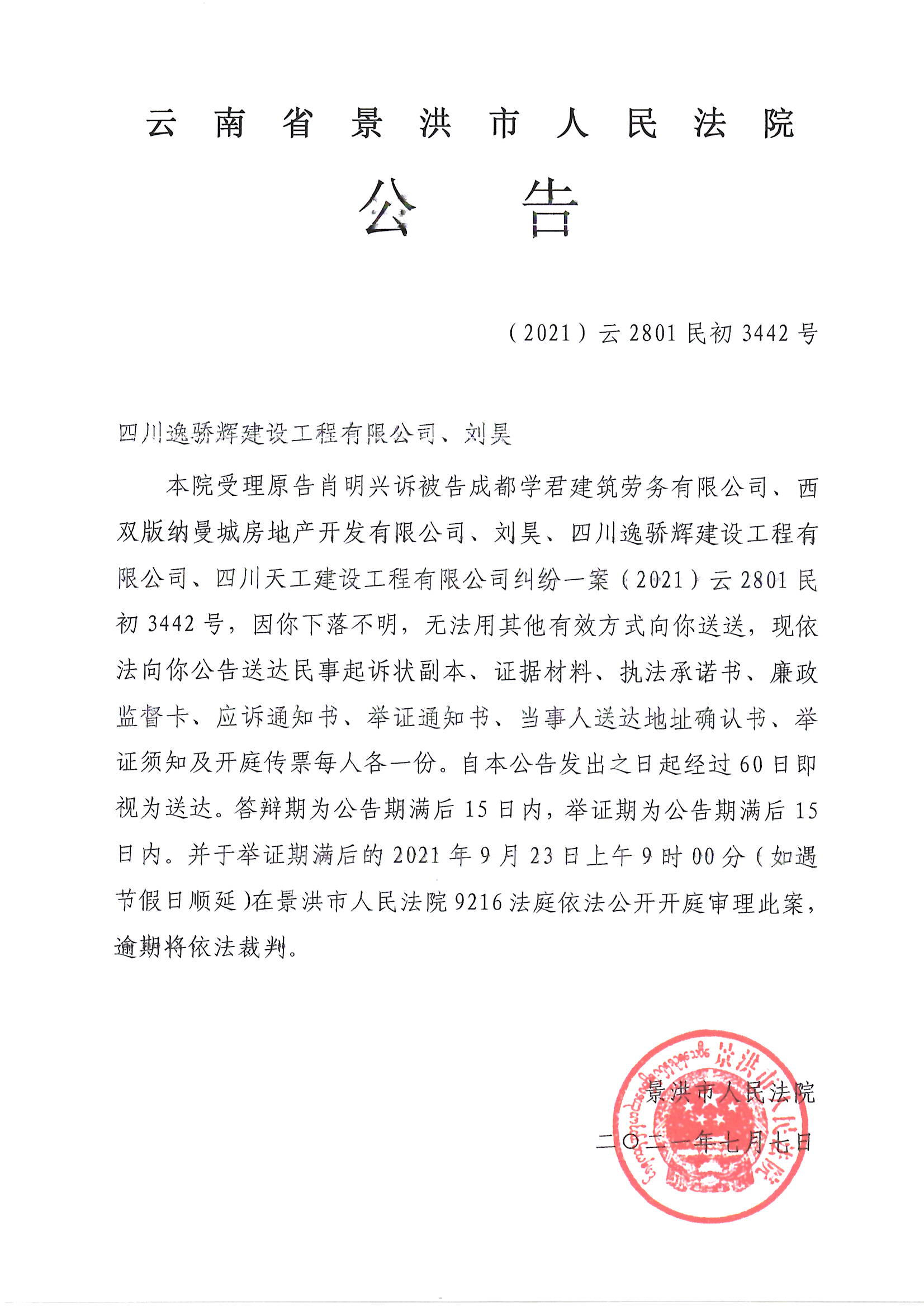 四川逸骄辉建设工程有限公司、刘昊(开庭公告)