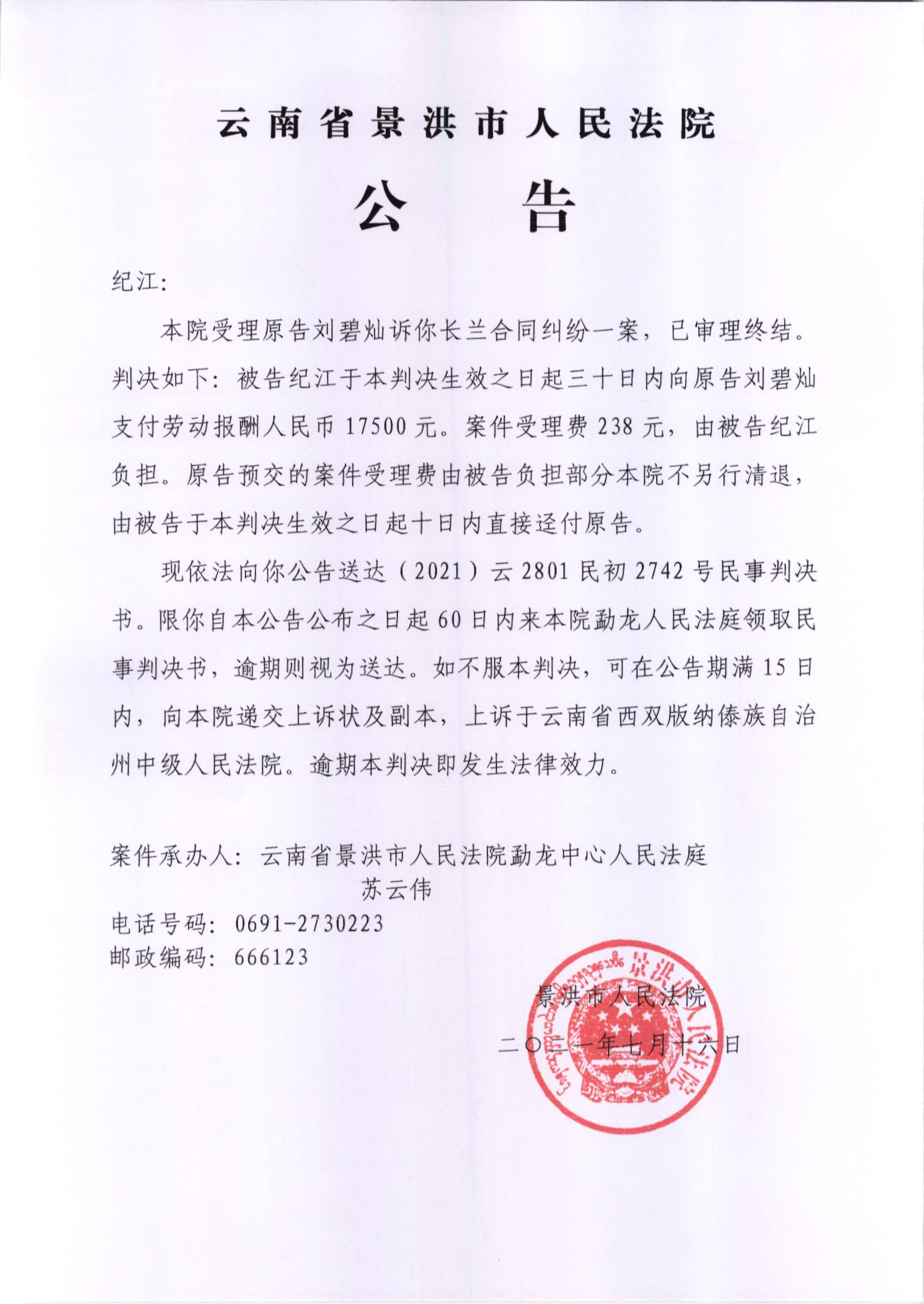 作者 :景洪市人民法院勐龙人民法庭 来源:本站原创 访问次数 :
