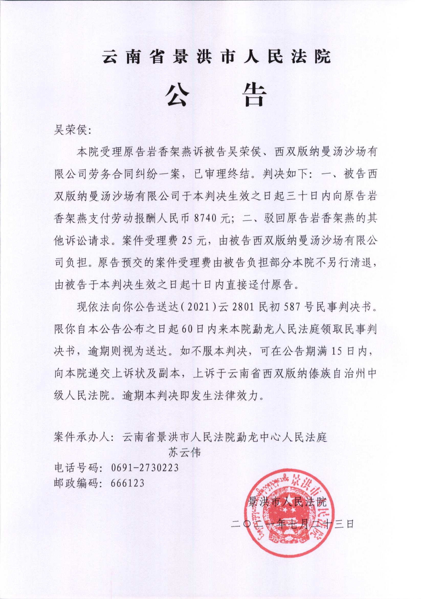 作者 :景洪市人民法院勐龙人民法庭 来源:本站原创 访问次数 :
