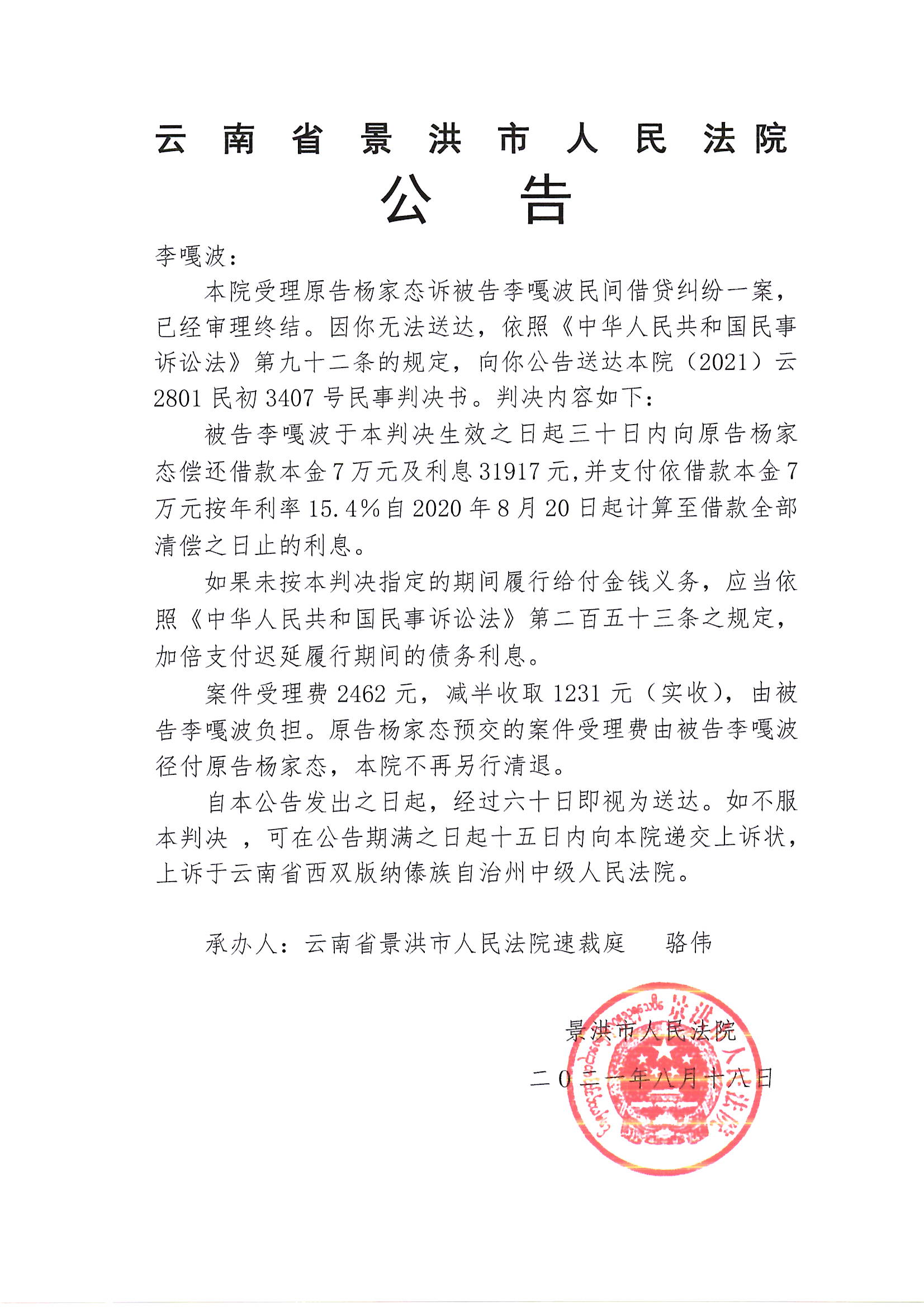 李嘎波(判决公告)