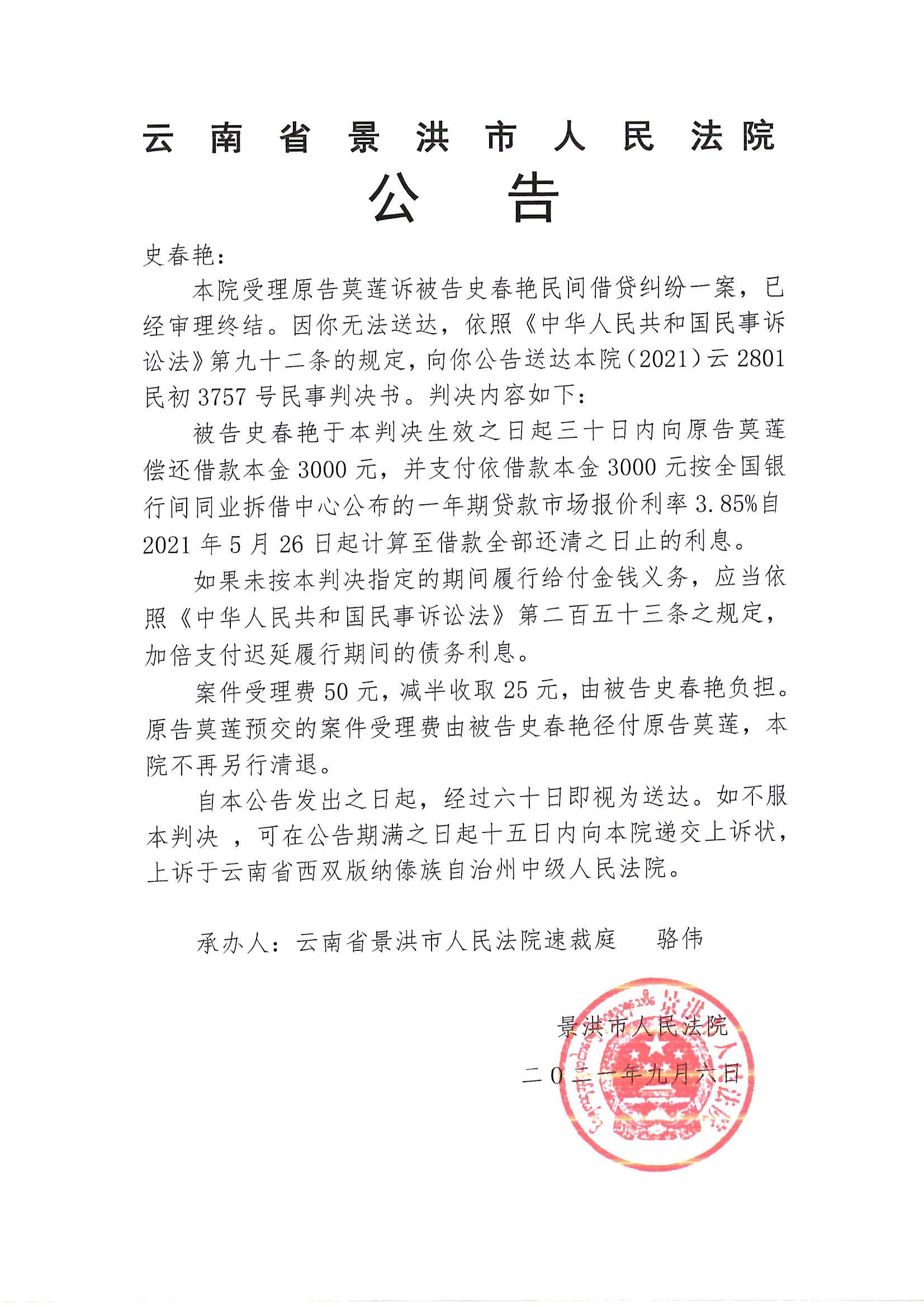 史春艳(判决公告)