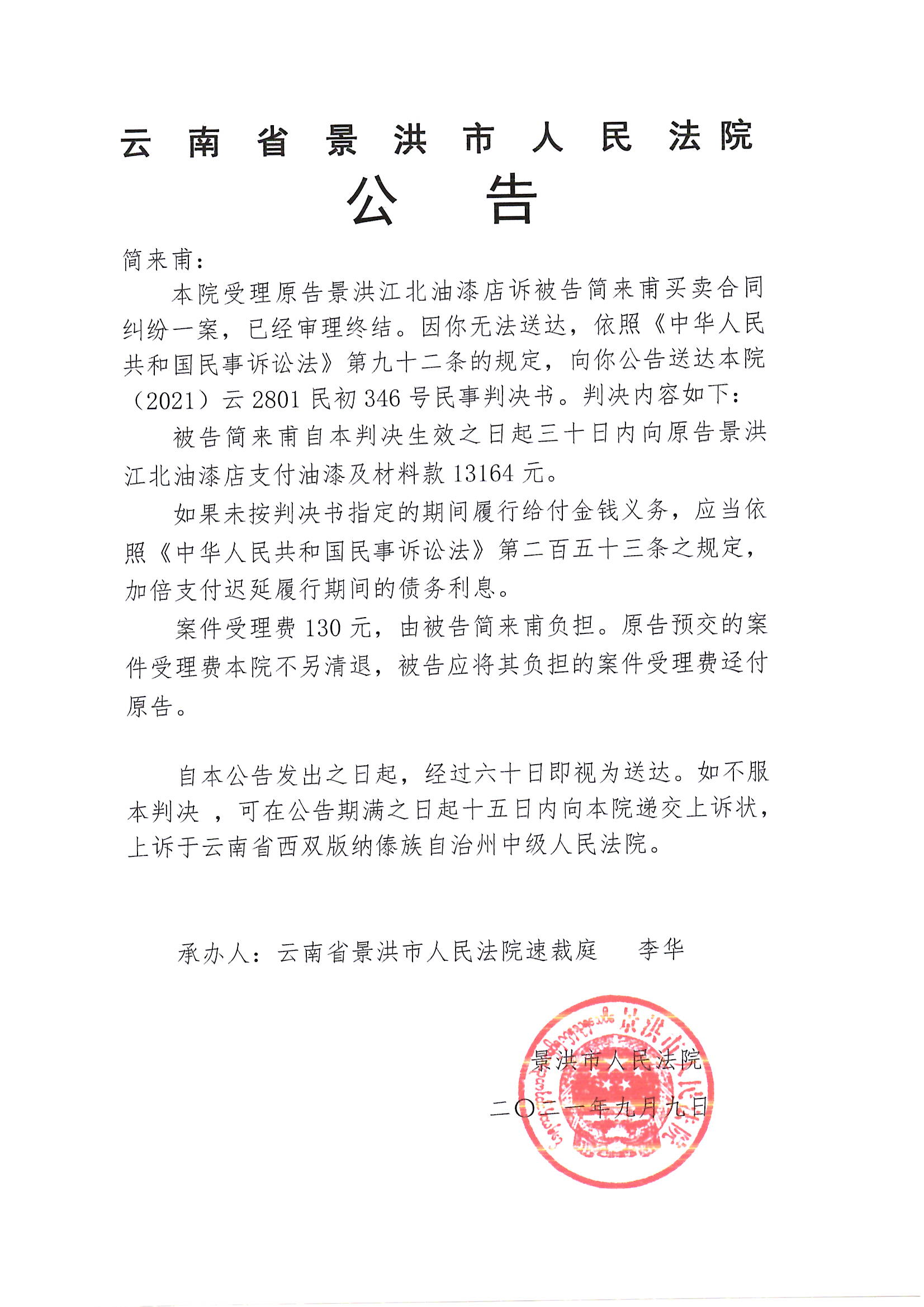 简来甫(判决公告)