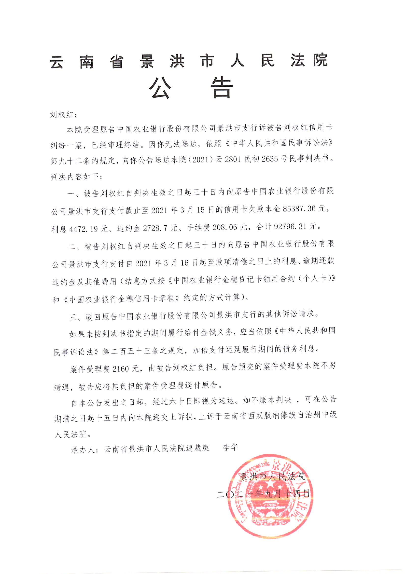刘权红(判决公告)