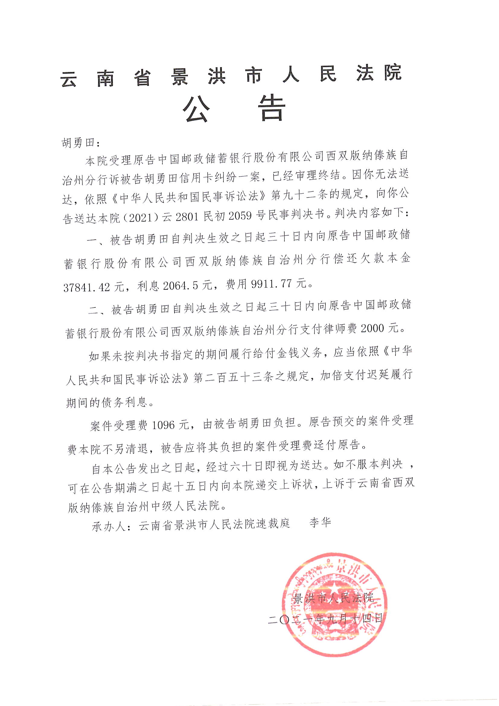 胡勇田(判决公告)