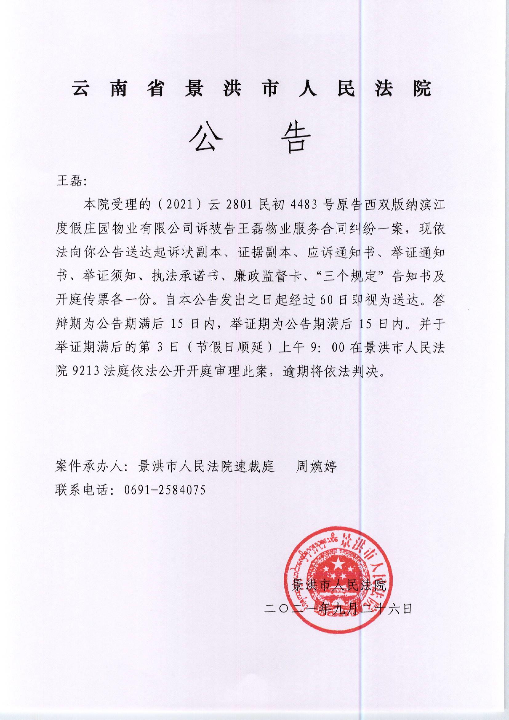 王磊(传票公告)