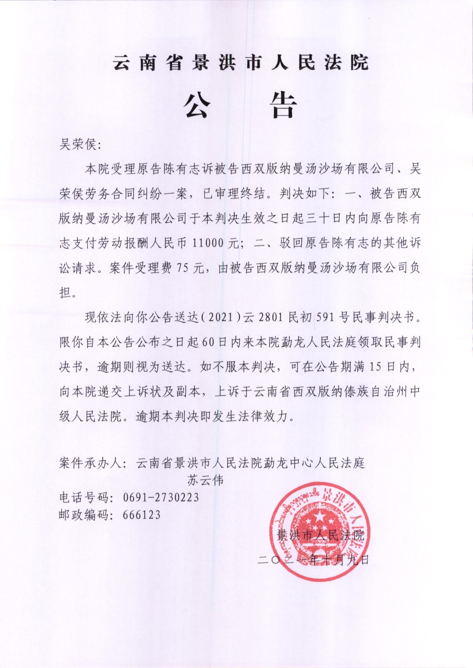 作者 :景洪市人民法院勐龙人民法庭 来源:本站原创 访问次数 :
