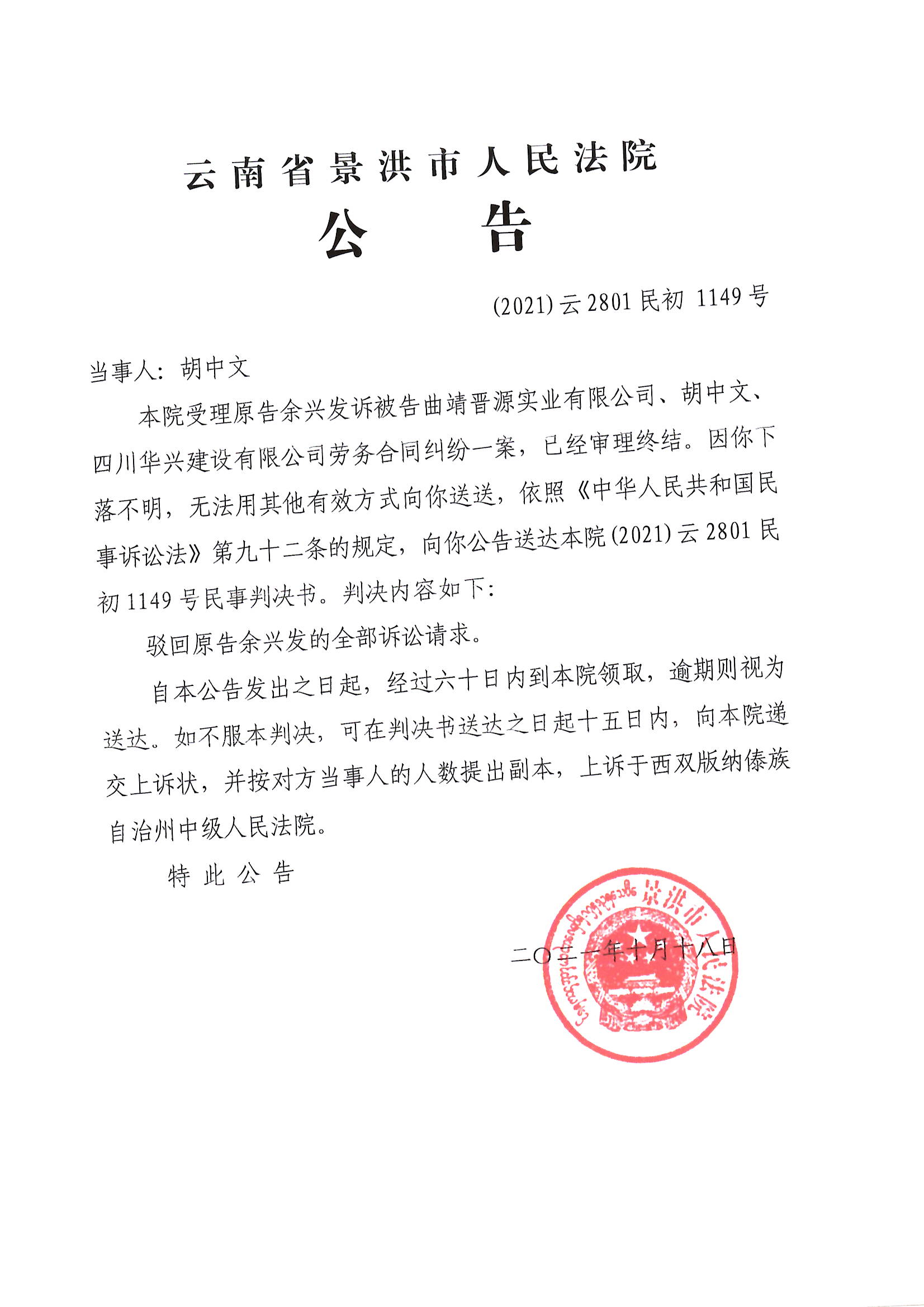 胡中文(判决公告)