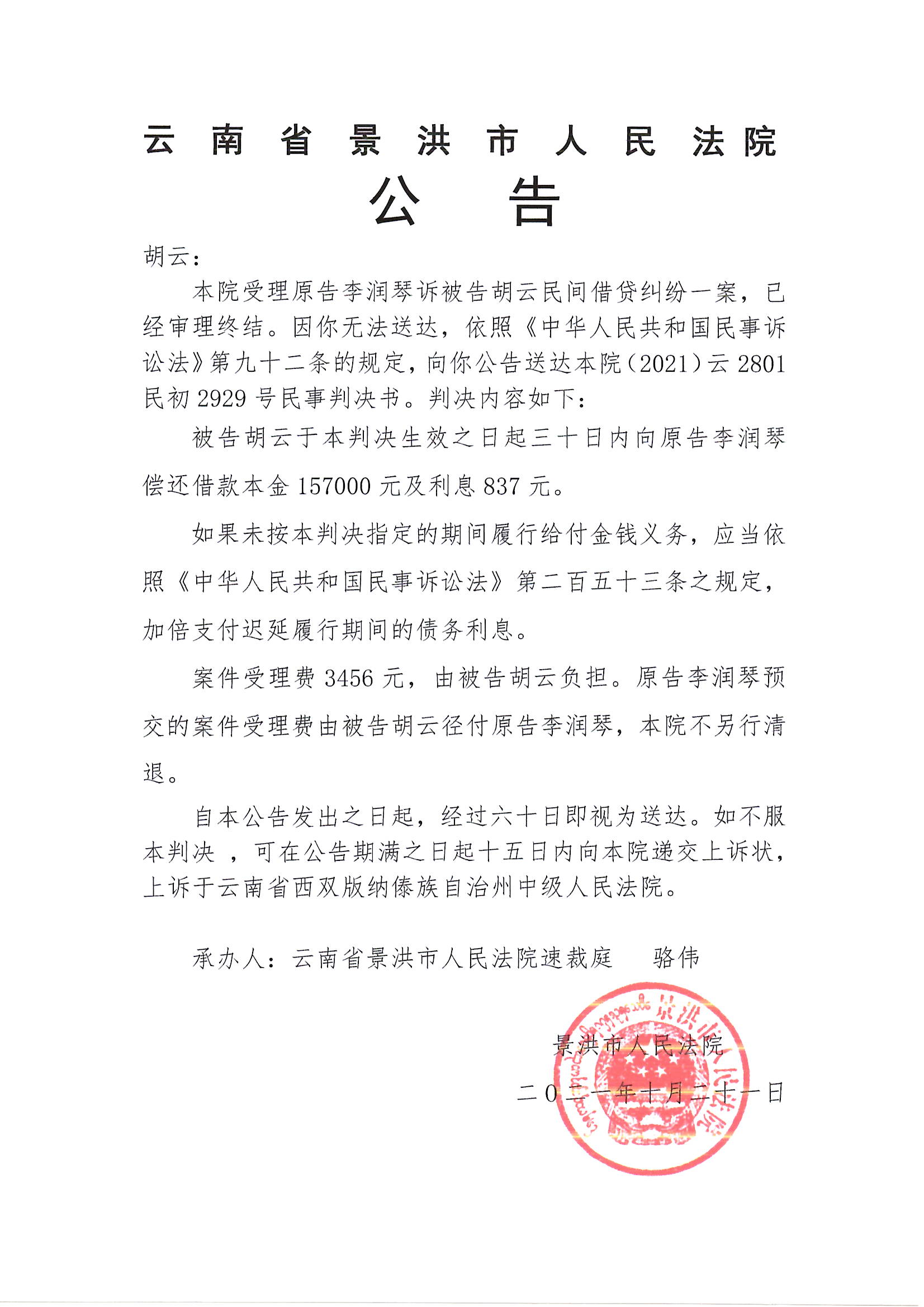 胡云(判决公告)