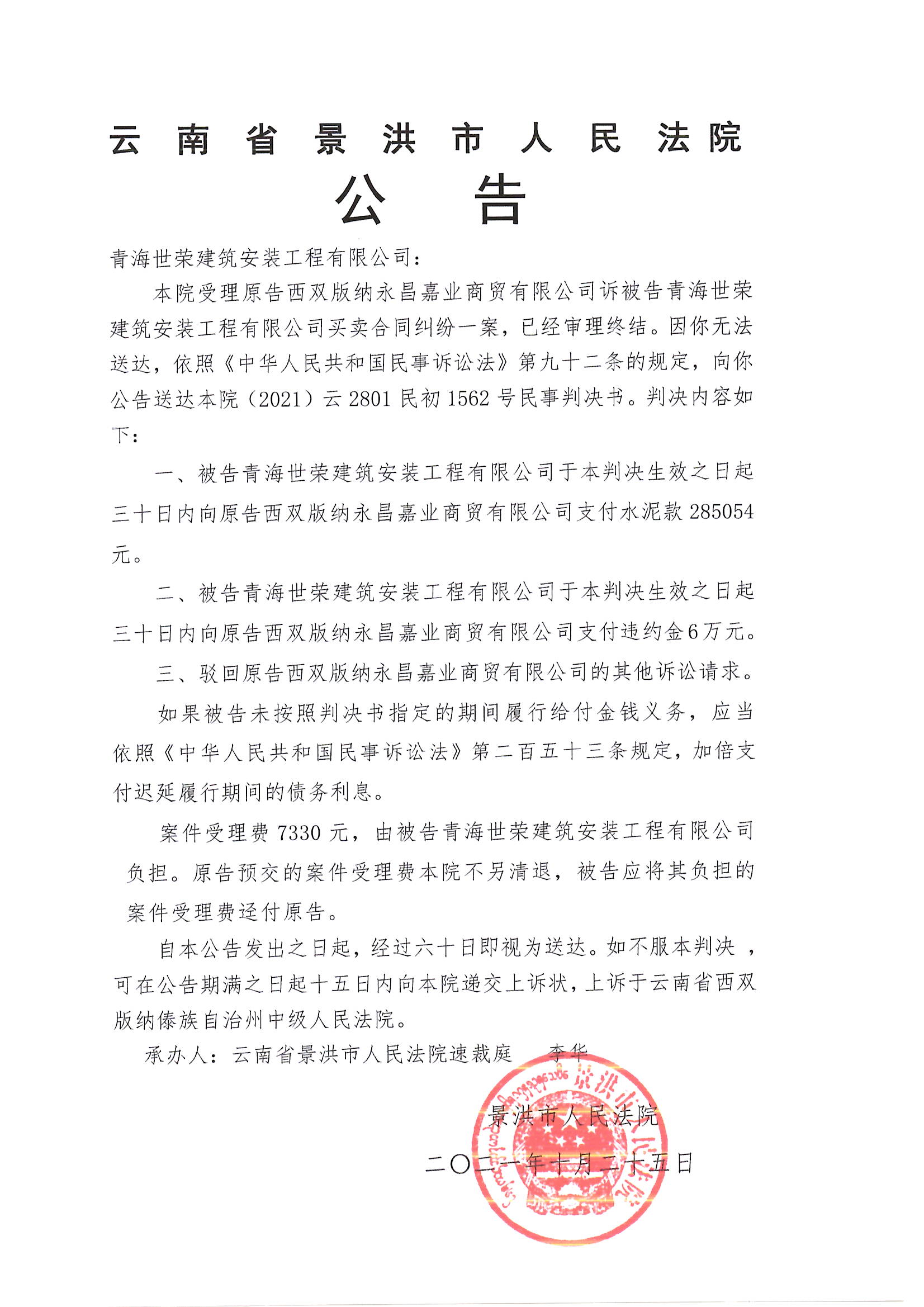 青海世荣建筑安装工程有限公司(判决公告)