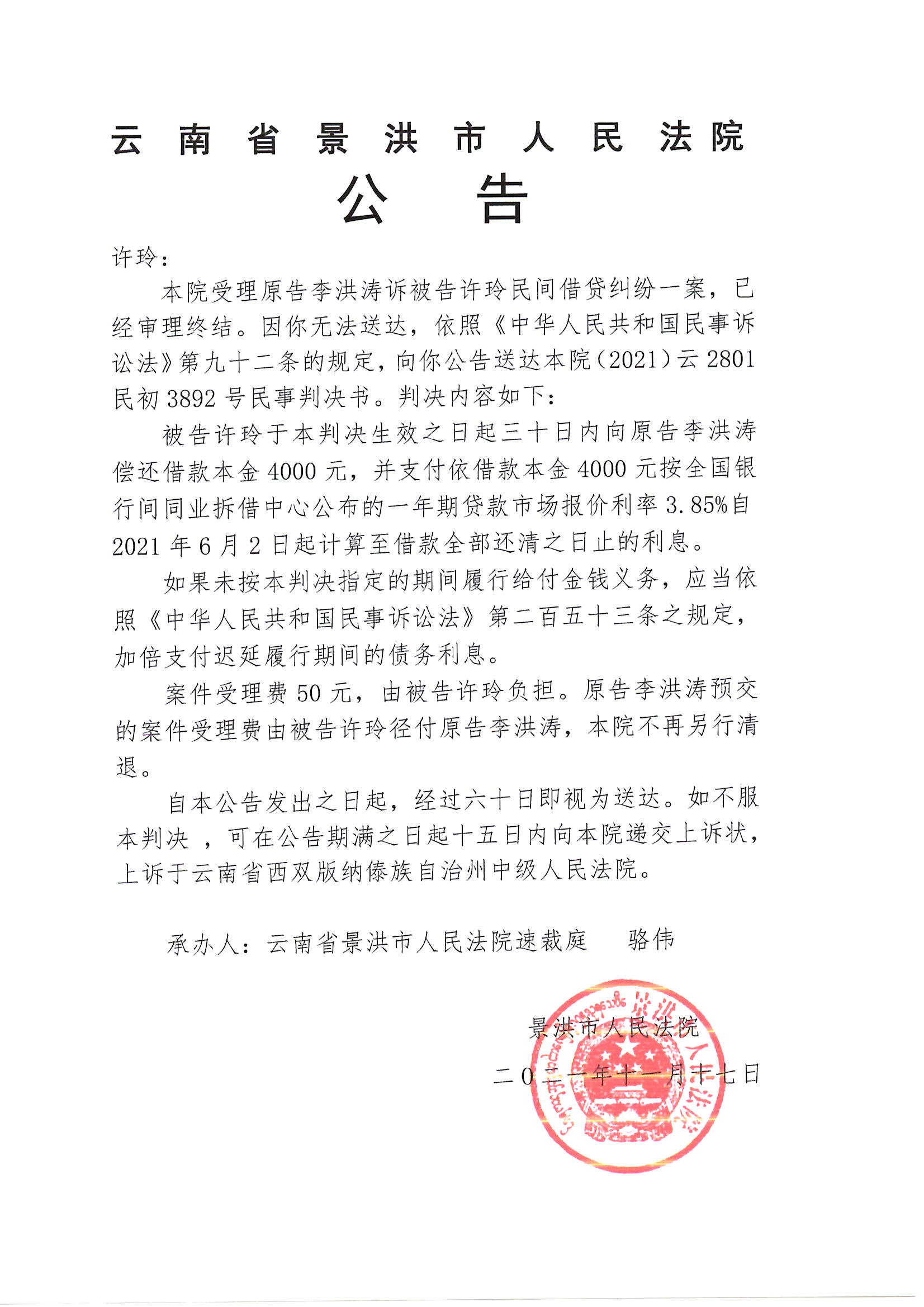 许玲(判决公告)