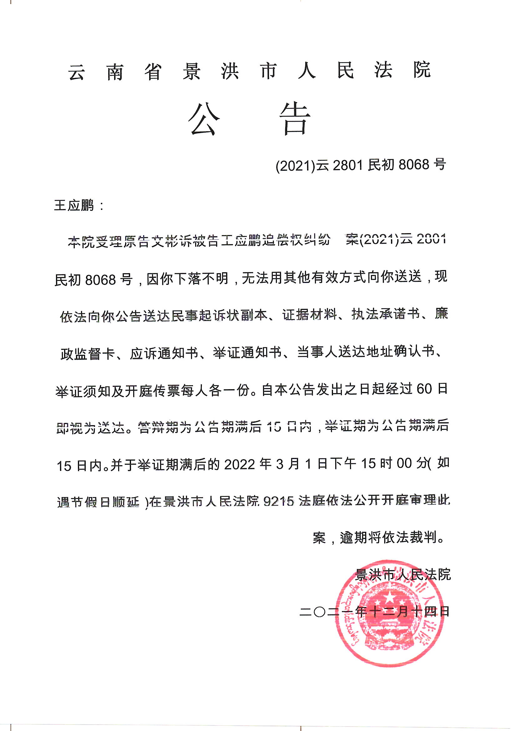 王应鹏(开庭公告)