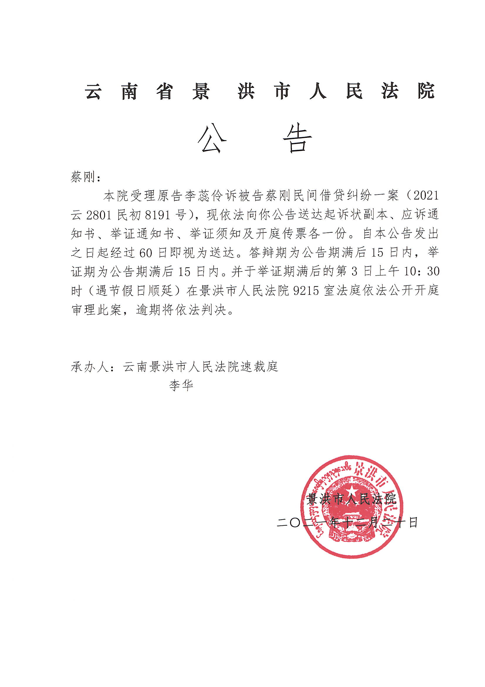 蔡刚(传票公告)