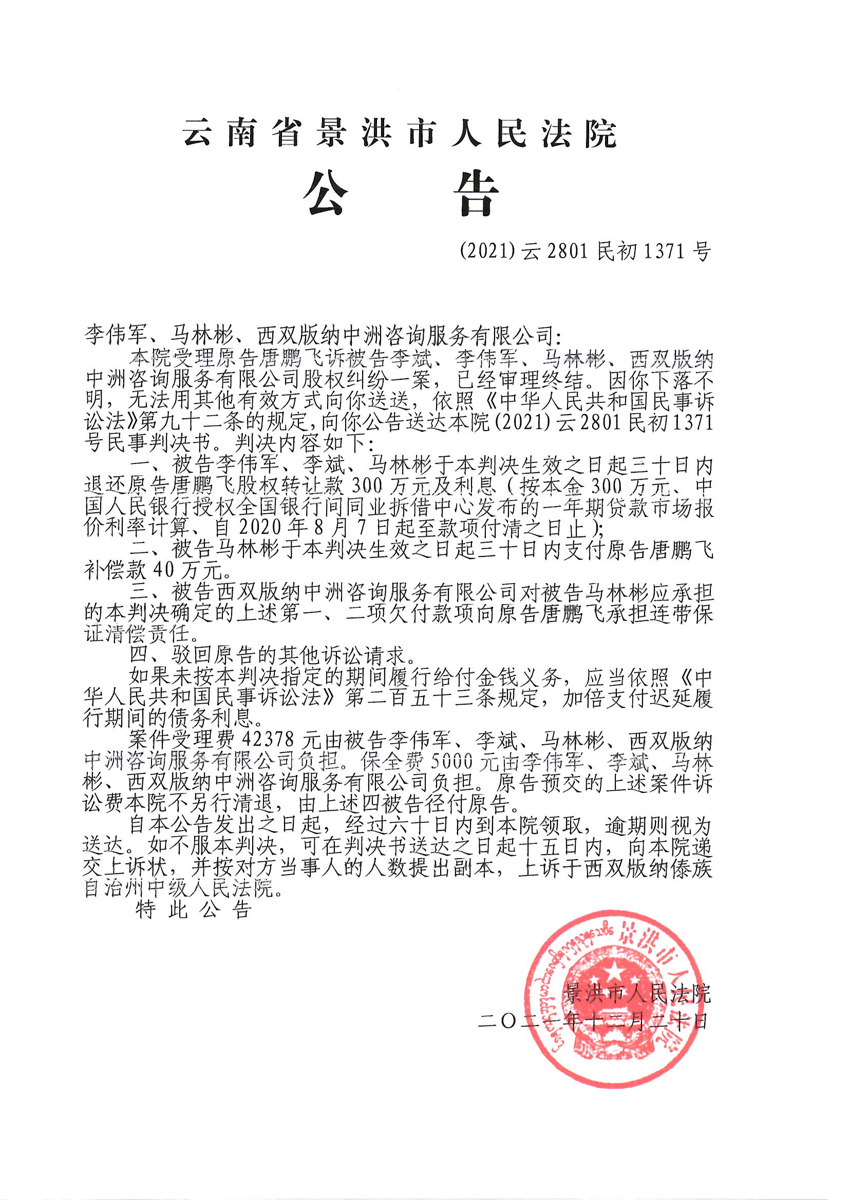 李伟军、马林彬、西双版纳中洲咨询服务有限公司(判决公告)