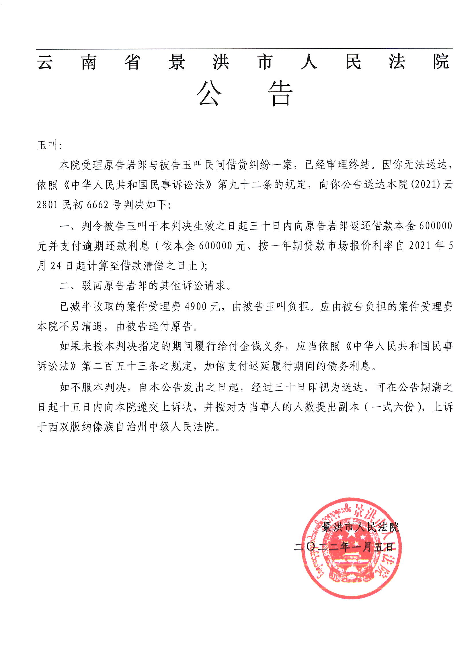 玉叫(判决)