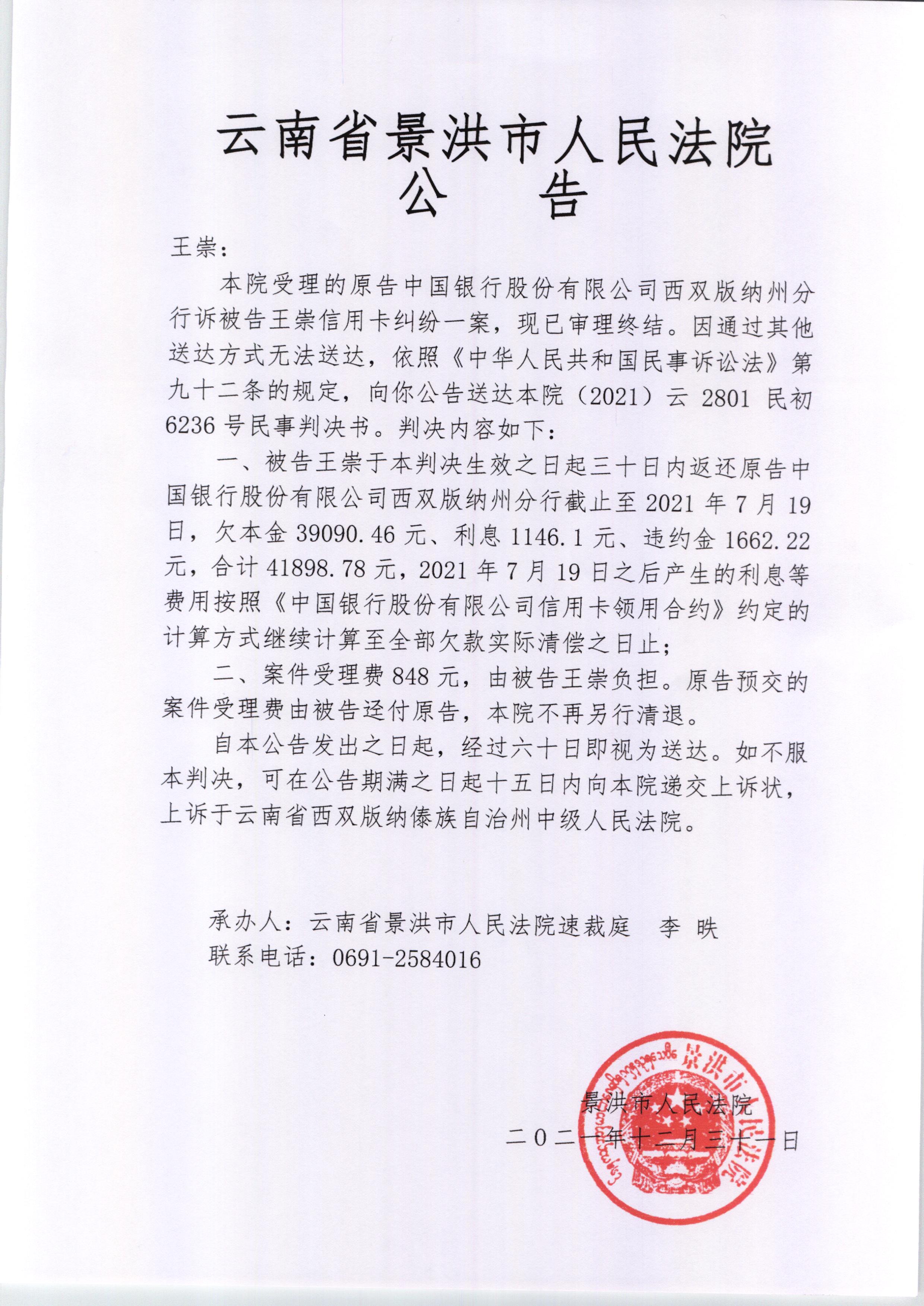 王崇(判决公告)