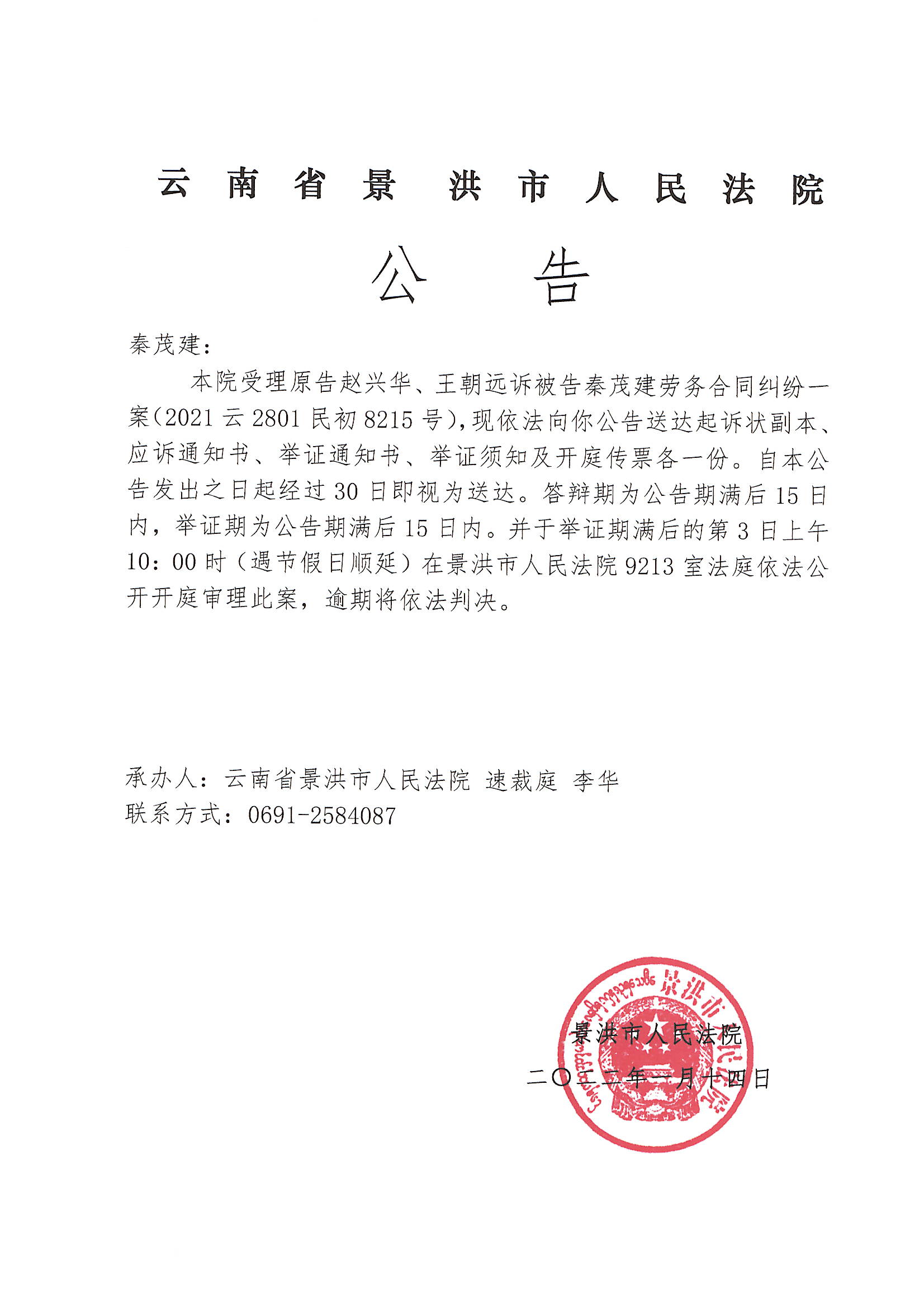 秦茂建(传票公告)
