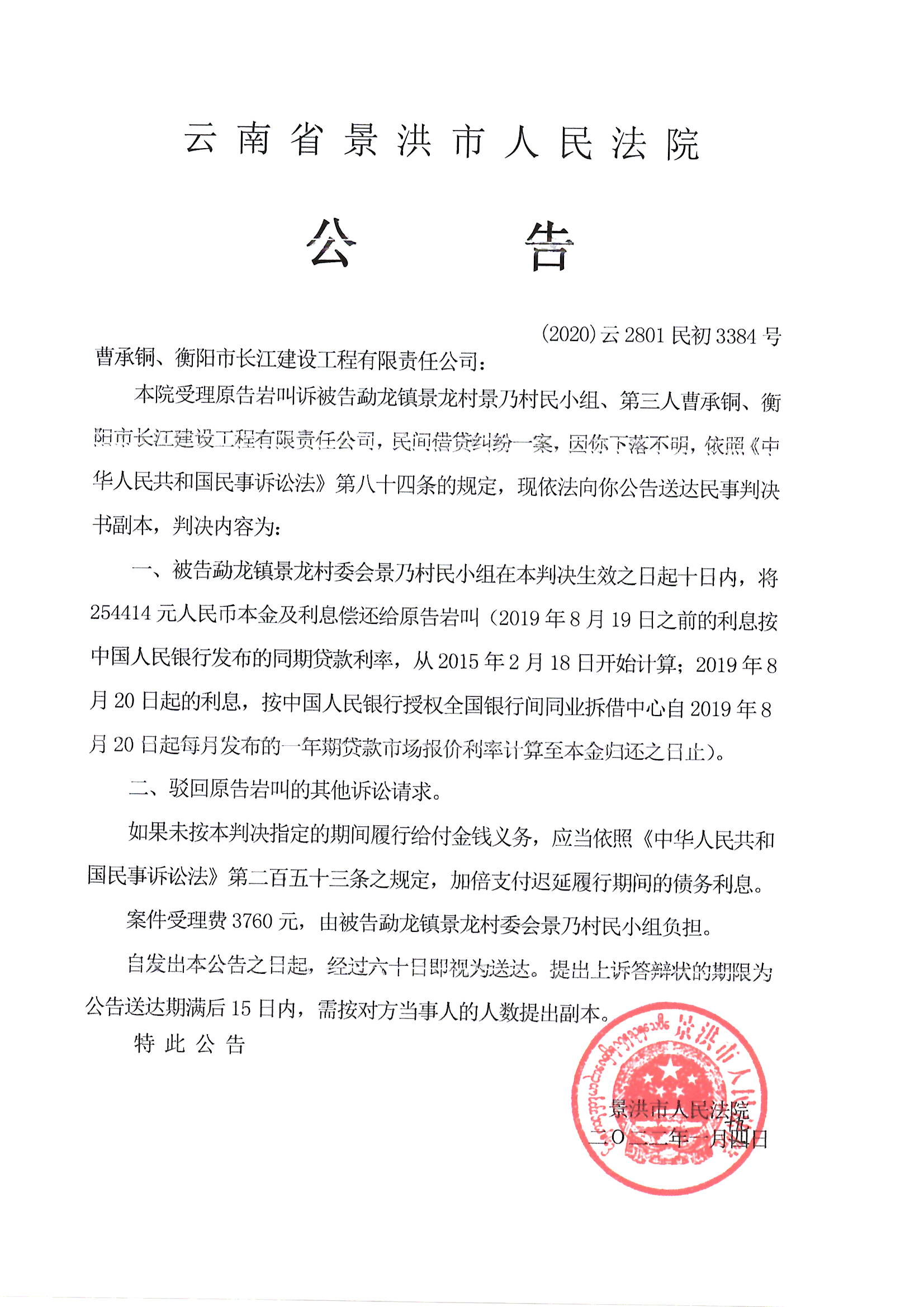 曹承铜、衡阳市长江建设工程有限责任公司(判决公告)