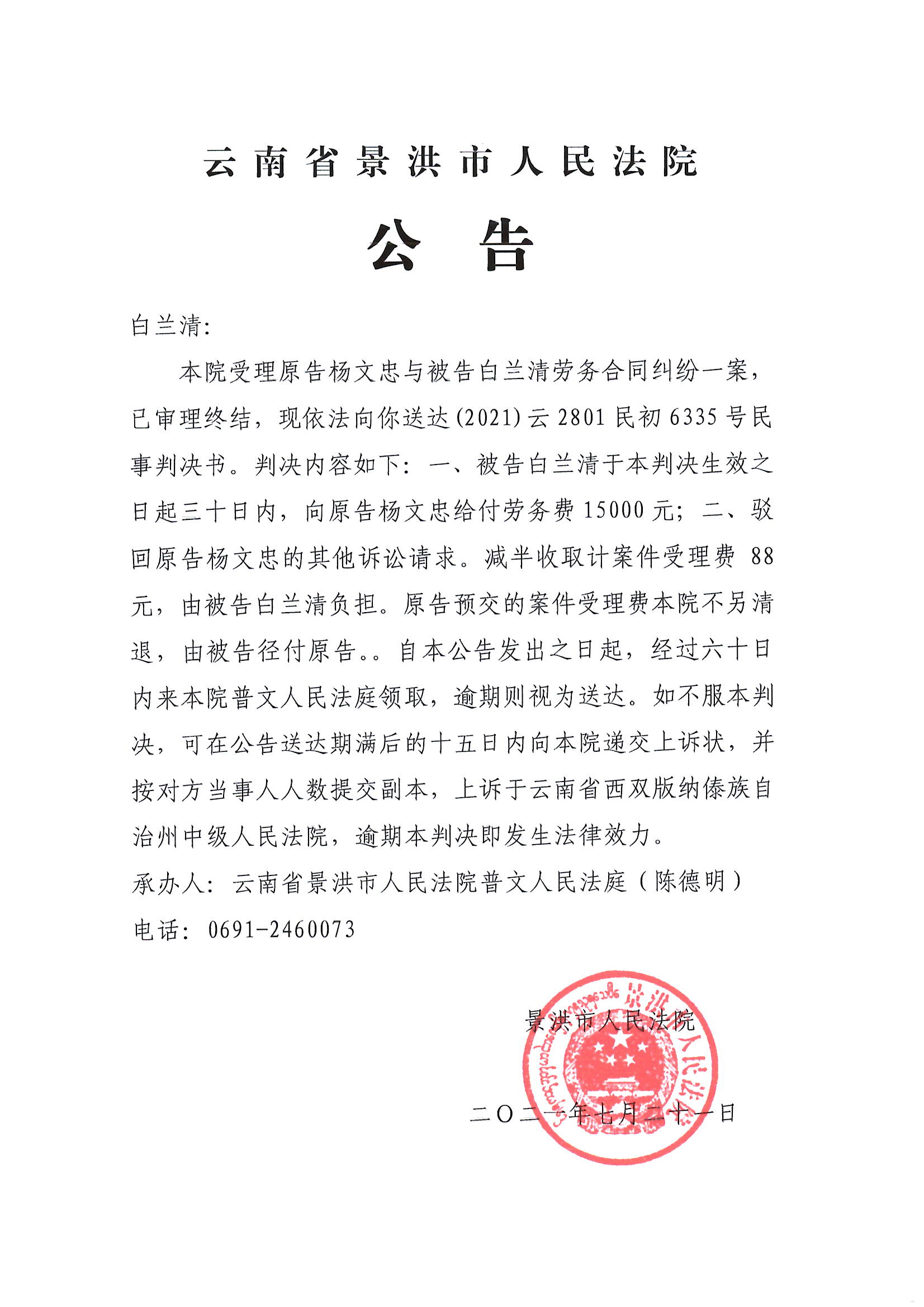 白兰清判决公告