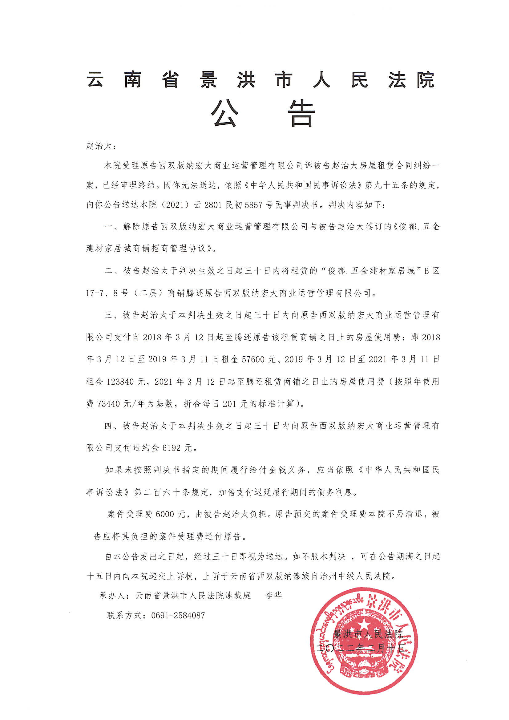 赵治太(判决公告)
