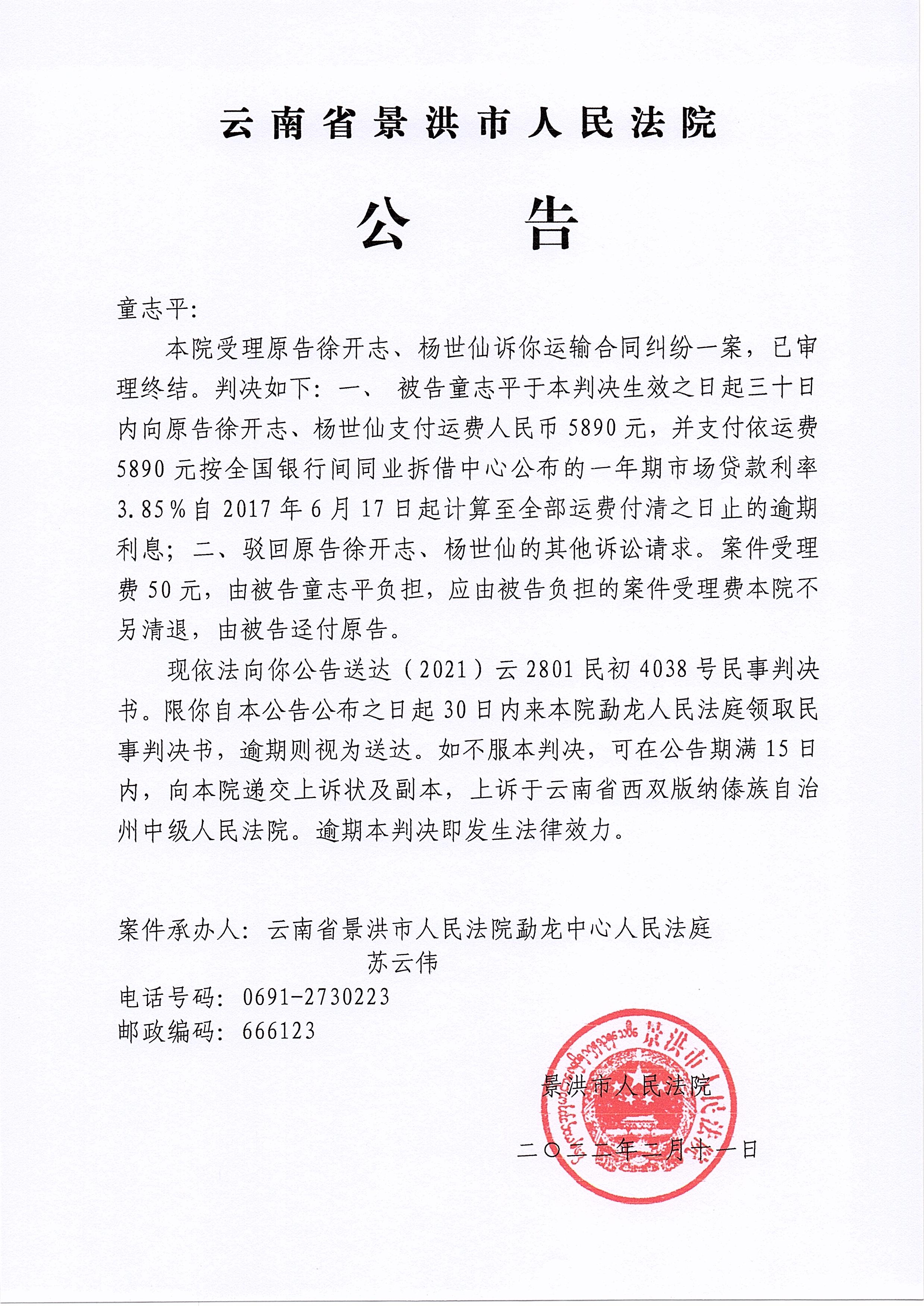 作者 :景洪市人民法院勐龙人民法庭 来源:本站原创 访问次数 :