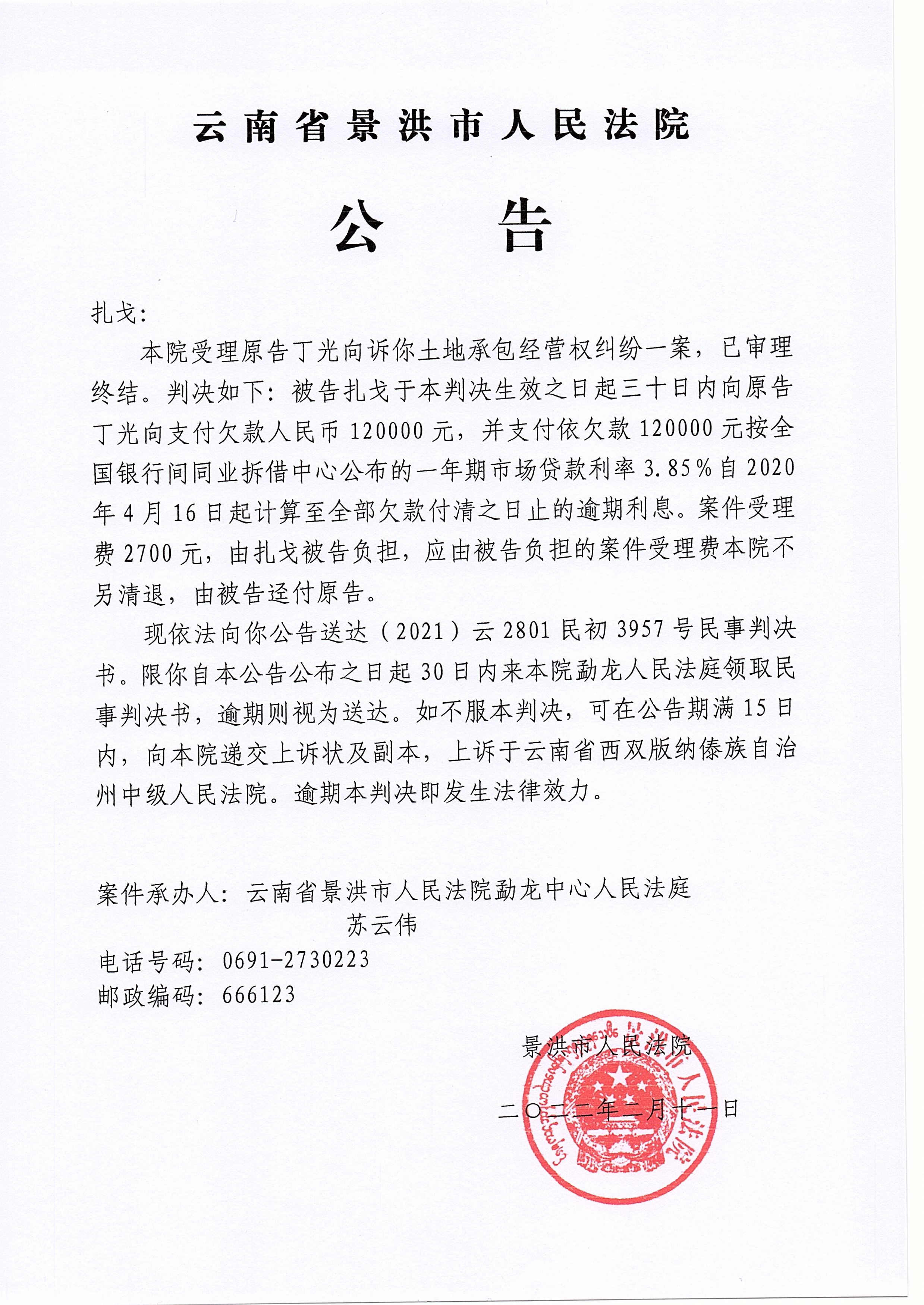 作者 :景洪市人民法院勐龙人民法庭 来源:本站原创 访问次数 :